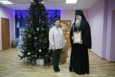 Всем ребятам владыка Феофан подарил сладкие рождественские подарки. Руководитель учреждения Марина Юрьевна Камелина в ответном слове поблагодарила главу епархии за духовное окормление и систематическую благотворительную помощь семьям, находящимся в трудной жизненной ситуации.