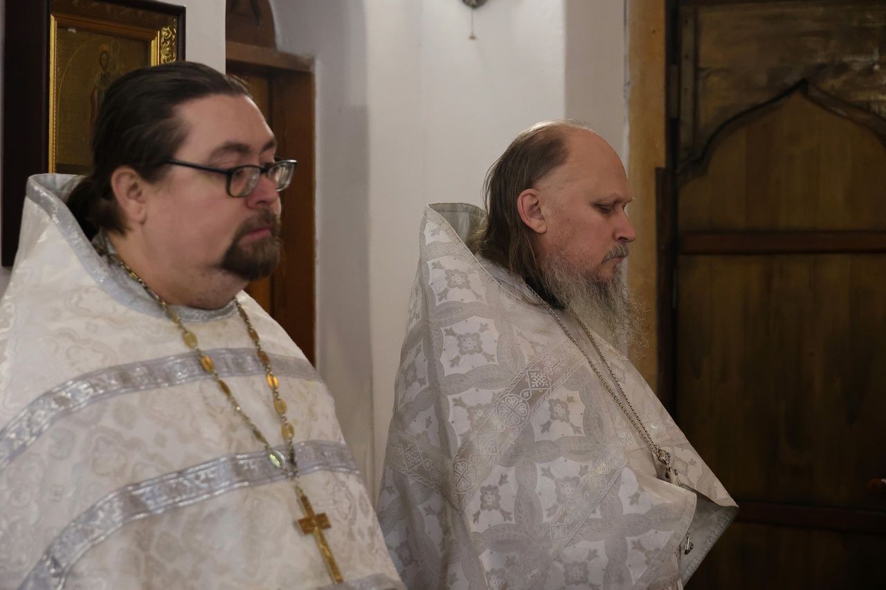 Его Преосвященству сослужили настоятель храма митрофорный протоиерей Александр Михайлов, настоятель Троицкого храма с. Помары иерей Сергей Петров, настоятель храма Покрова Пресвятой Богородицы с. Илеть иерей Виталий Ульянов, клирик храма святого праведного Иоанна Кронштадтского г. Волжска иерей Алексий Скрябин, клирики Никольского кафедрального собора диаконы Иоанн Захаров и Димитрий Карпетченко.