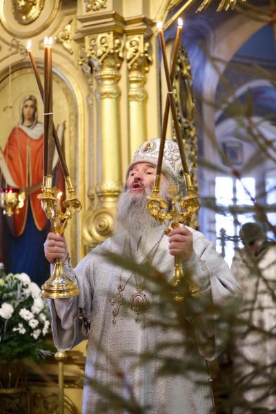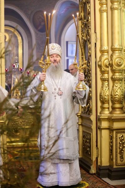 После богослужения митрополит Иоанн обратился к верующим с архипастырским словом: «Слава в вышних Богу и на земли мир! Этот мир принес Рождшийся Богомладенец. Мир этот – это особый дар, когда человек в душе ощущает спокойствие, радость, это видимое присутствие в нашем сердце Спасителя. И от этого присутствия Божия мир воцаряется в нашем сердце.