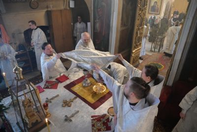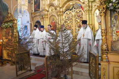 Его Высокопреосвященству сослужили клирики храма протоиерей Павел Матвеев, иереи Сергий Асланов, Димитрий Иванов, Павел Дурандин, протодиакон Михаил Козловский и диакон Димитрий Смирнов. Песнопения исполнял хор храма.