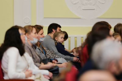 Далее началась музыкальная программа – перед зрителями выступили камерный струнный оркестр, сольные музыканты и ансамбли, хоровые коллективы детской школы искусств, колледжа культуры, храма мученицы Татианы и Троицкого храма Йошкар-Олы. Все музыкальные номера сопровождались текстами по мотивам рождественского рассказа Александра Куприна «Бедный принц», соединяя программу в единое целое. Вели концерт Вероника Плотникова и Ирина Новикова.