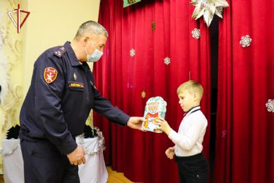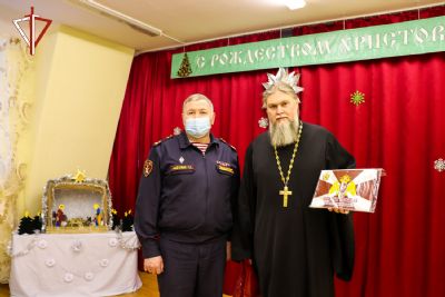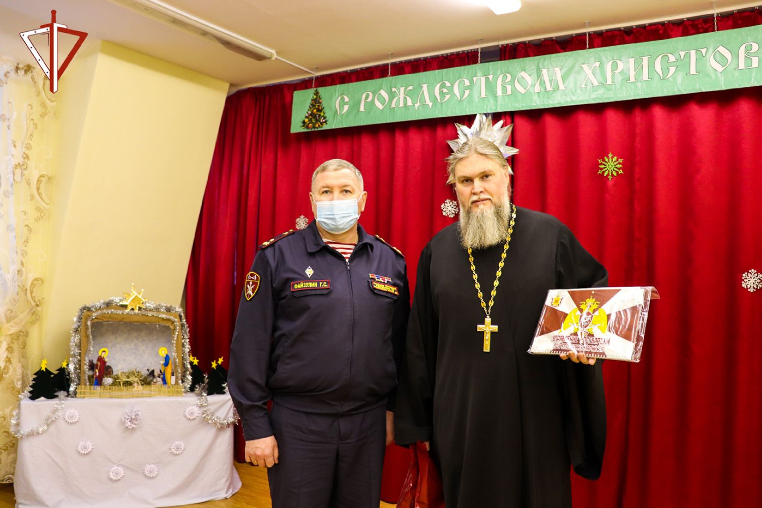 Начальник Управления Росгвардии по Республике Марий Эл полковник полиции Геннадий Файзулин и начальник пресс-службы регионального Управления Росгвардии старший лейтенант полиции Мария Рошко приехали к ребятам с рождественскими поздравлениями и сладкими подарками.