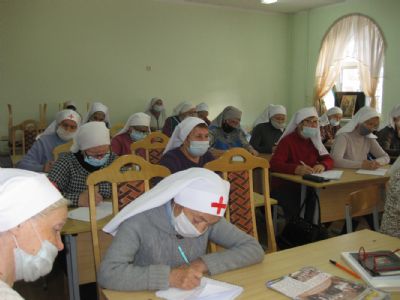 Молебен совершил протоиерей Сергий Поглазов, руководитель Архиерейского подворья. Он поблагодарил всех организаторов и рабочую группу за труды, отметив важность организации курсов повышения квалификации сестер-милосердия. В молебне приняли участие преподаватели, сестры милосердия, волонтеры.