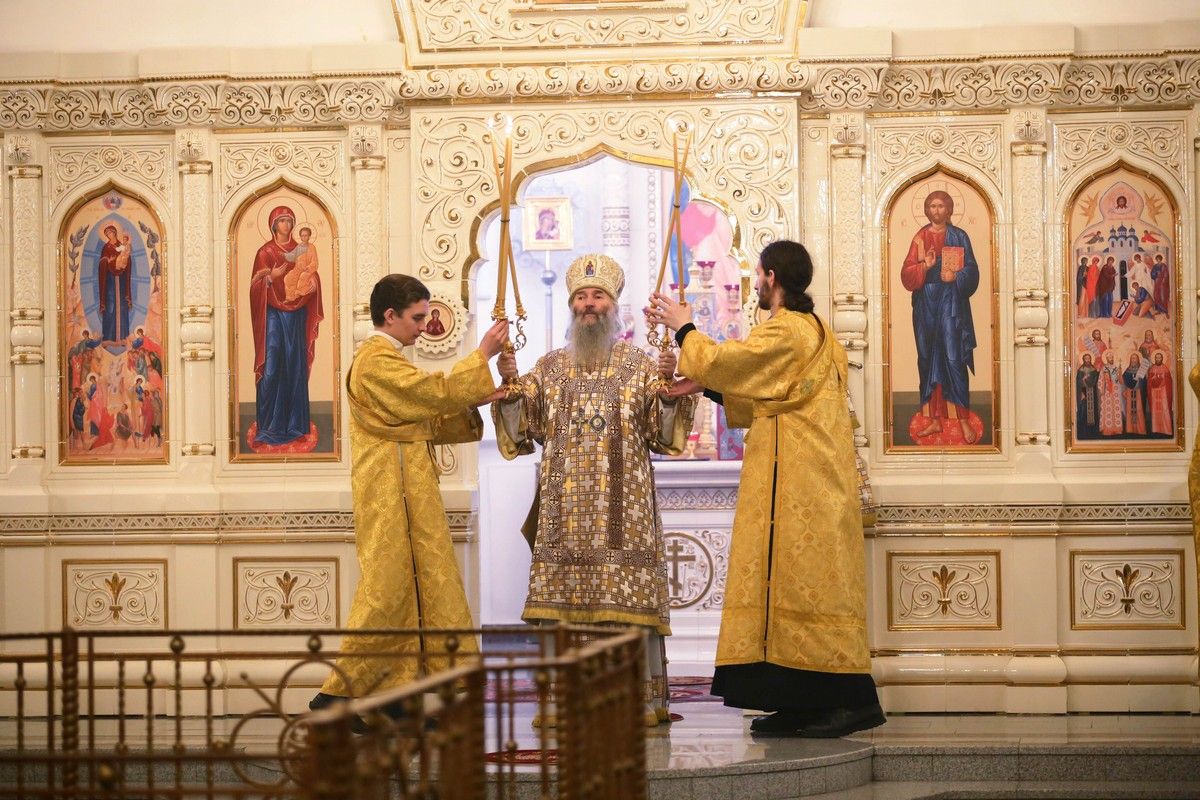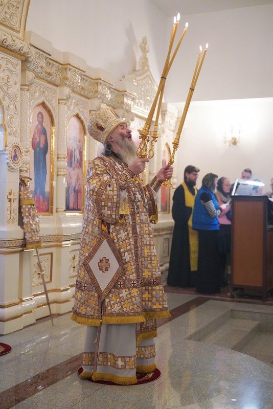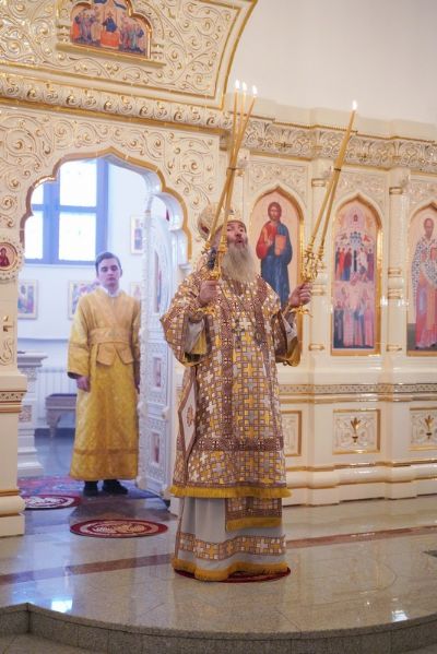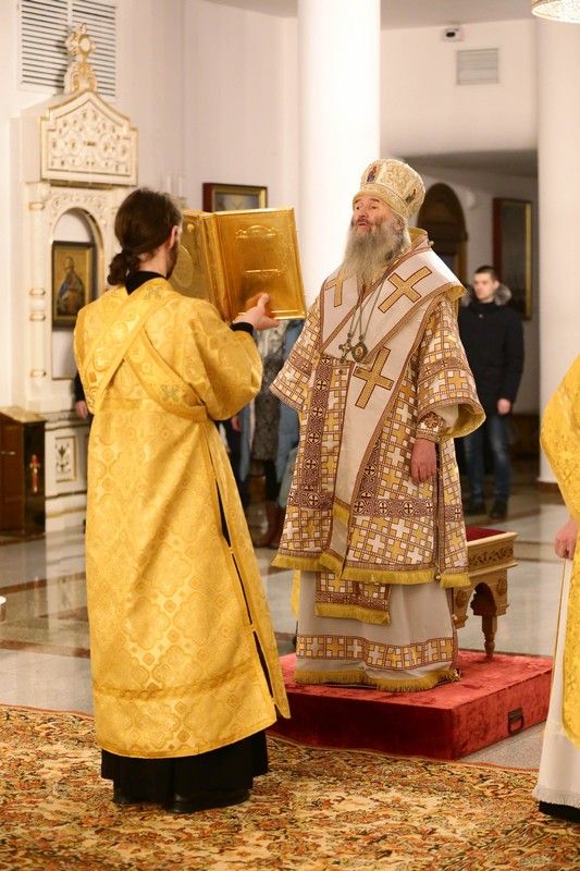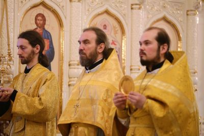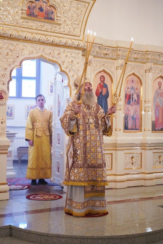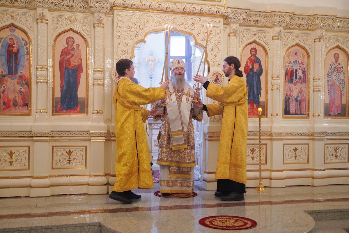 12 февраля, в день соборной памяти Трех святителей – Василия Великого, Григория Богослова и Иоанна Златоуста, митрополит Йошкар-Олинский и Марийский Иоанн совершил Божественную литургию в нижнем приделе Благовещенского кафедрального собора.