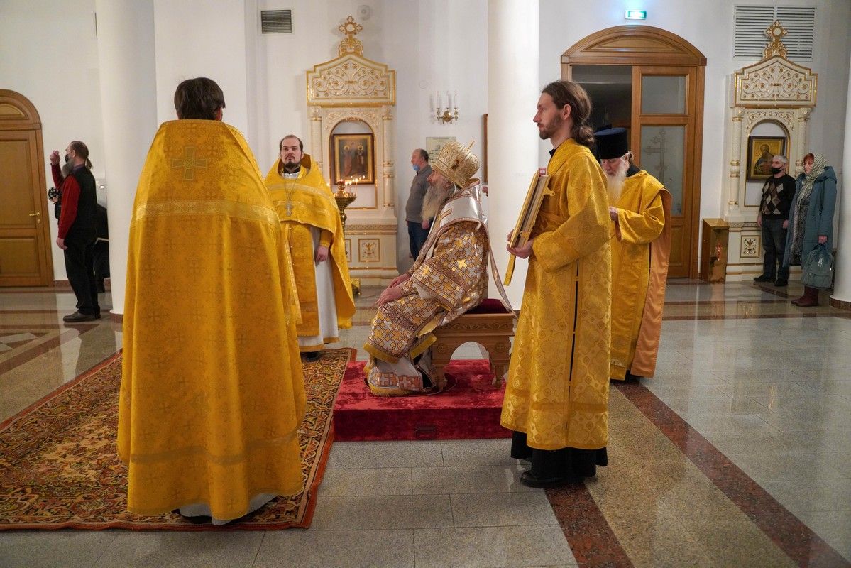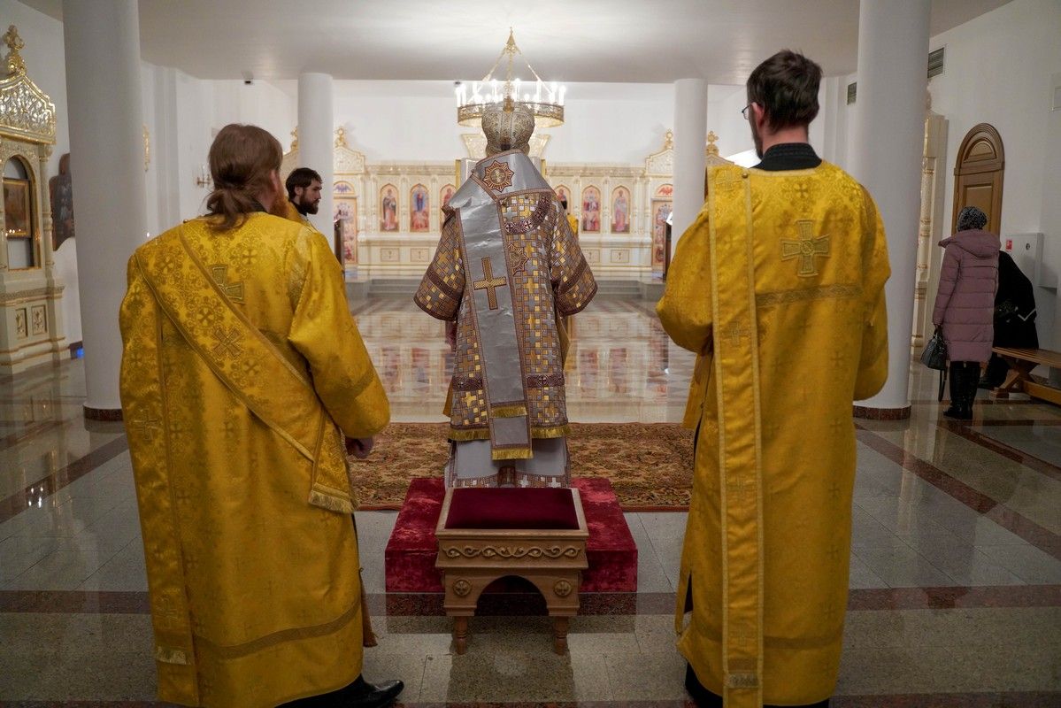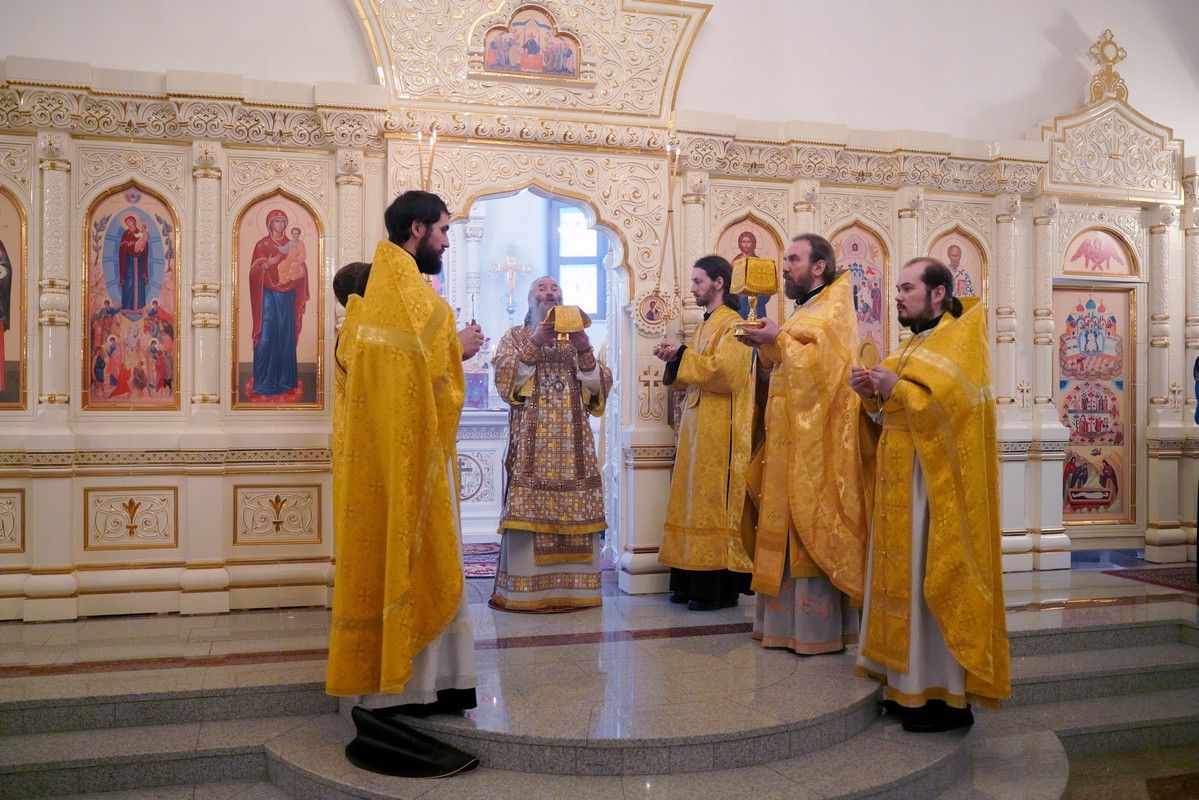 12 февраля, в день соборной памяти Трех святителей – Василия Великого, Григория Богослова и Иоанна Златоуста, митрополит Йошкар-Олинский и Марийский Иоанн совершил Божественную литургию в нижнем приделе Благовещенского кафедрального собора.