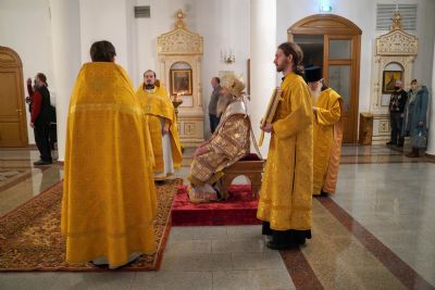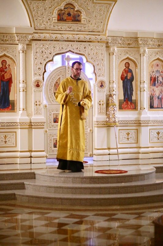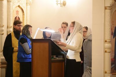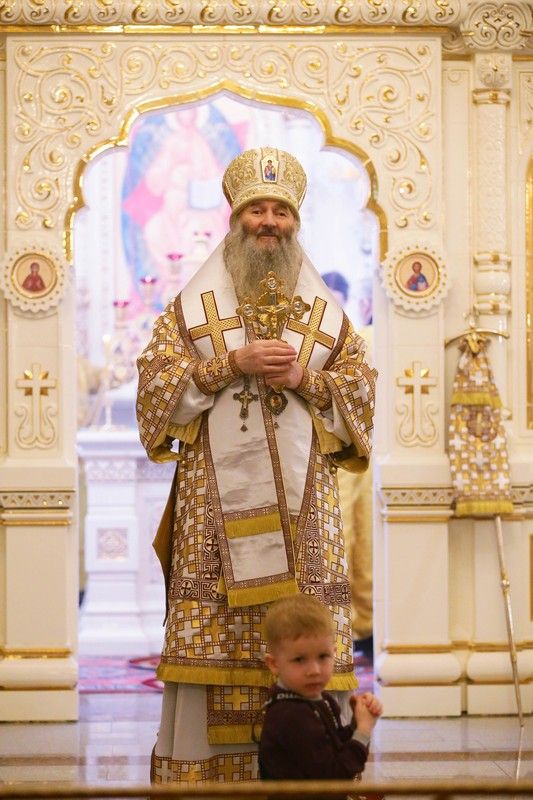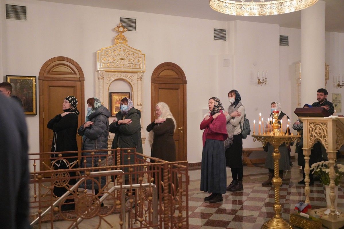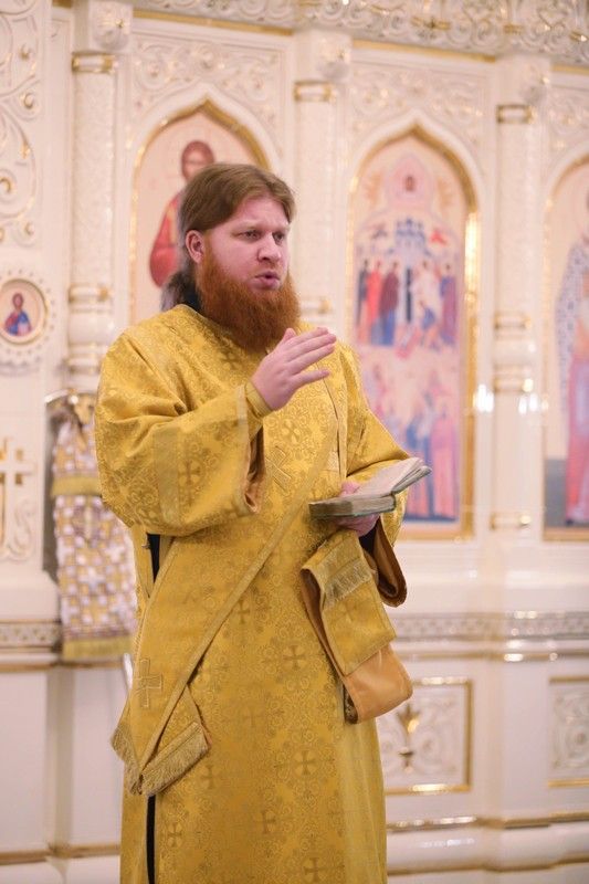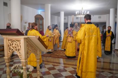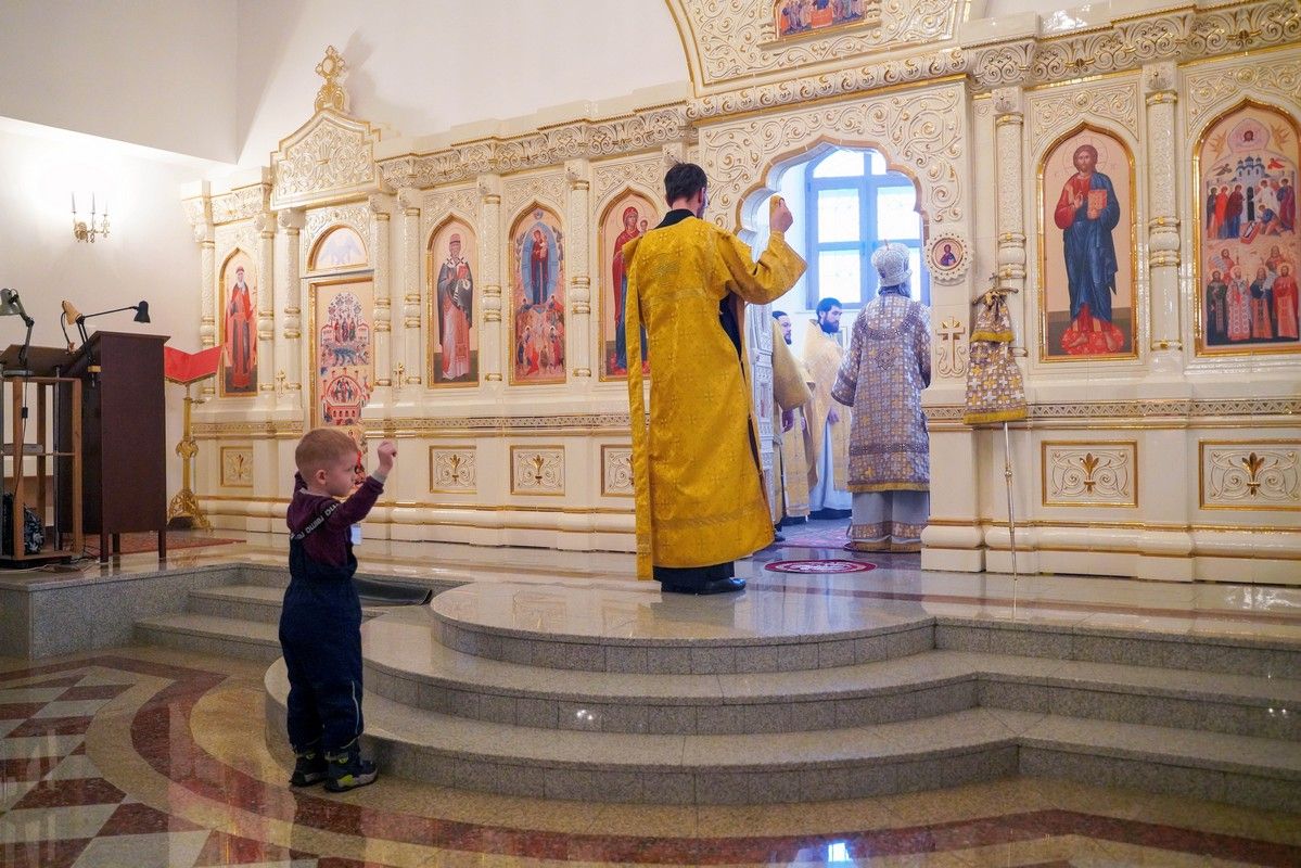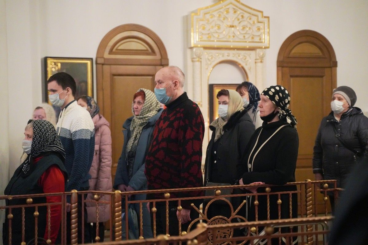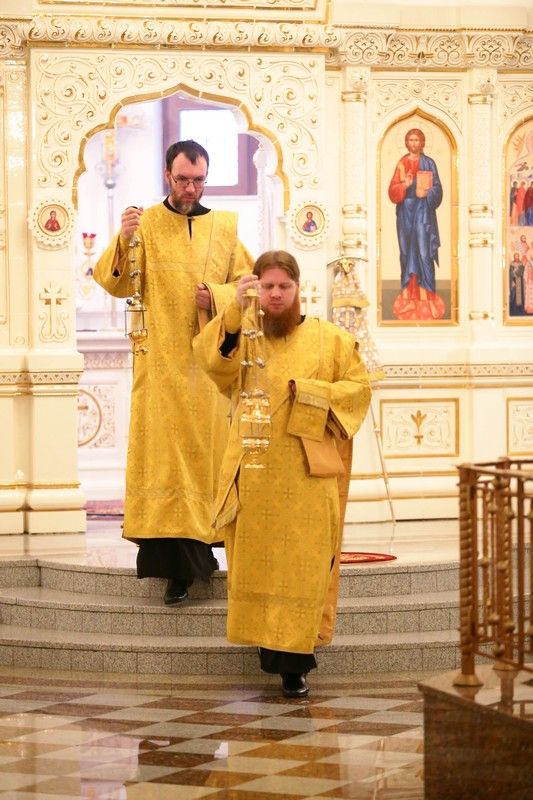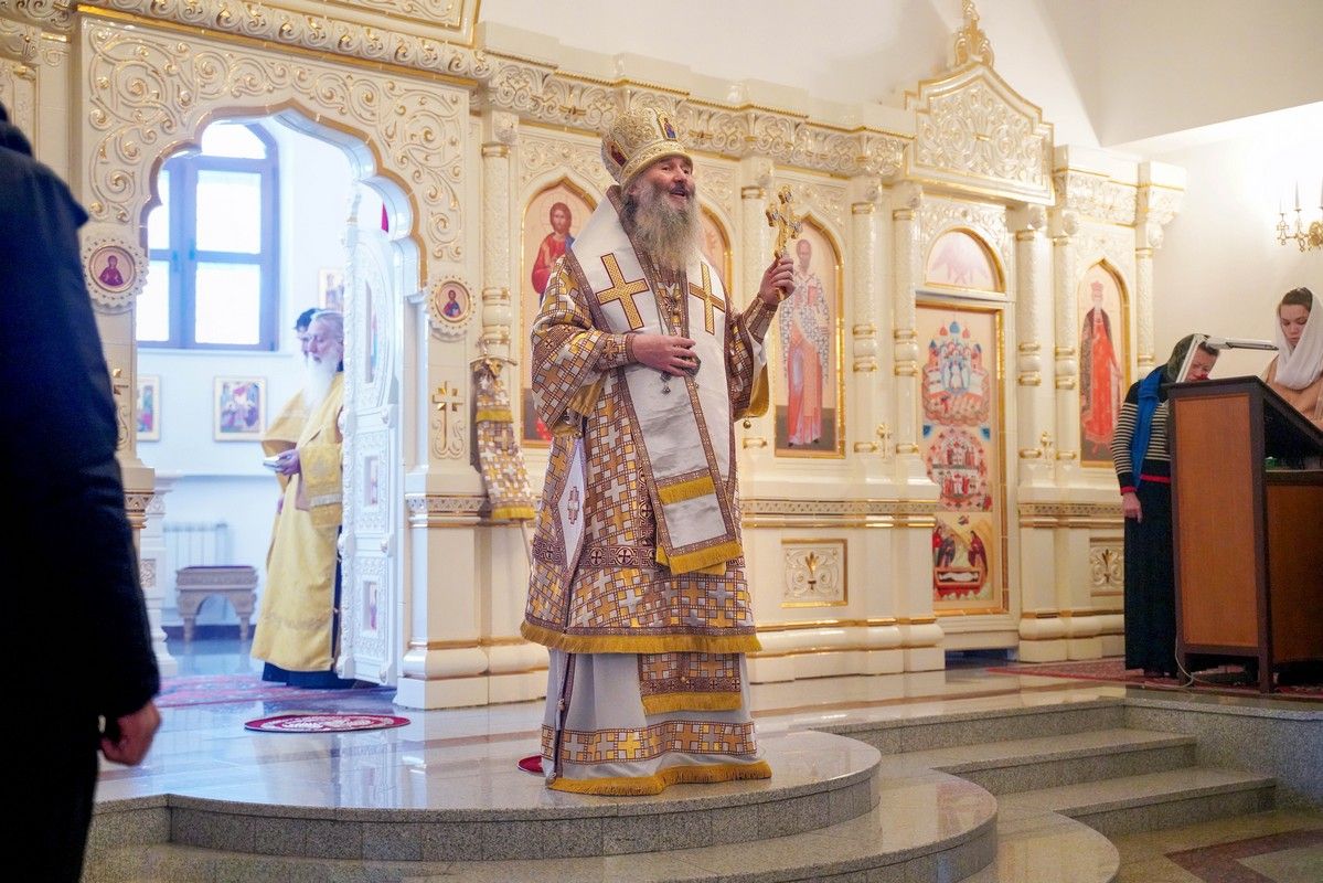 Архипастырю сослужили секретарь Йошкар-Олинского епархиального управления иеромонах Серафим (Пасанаев), клирики собора и протодиакон Михаил Козловский. Песнопения исполнял хор «Благовест» под управлением регента Татьяны Черновой.