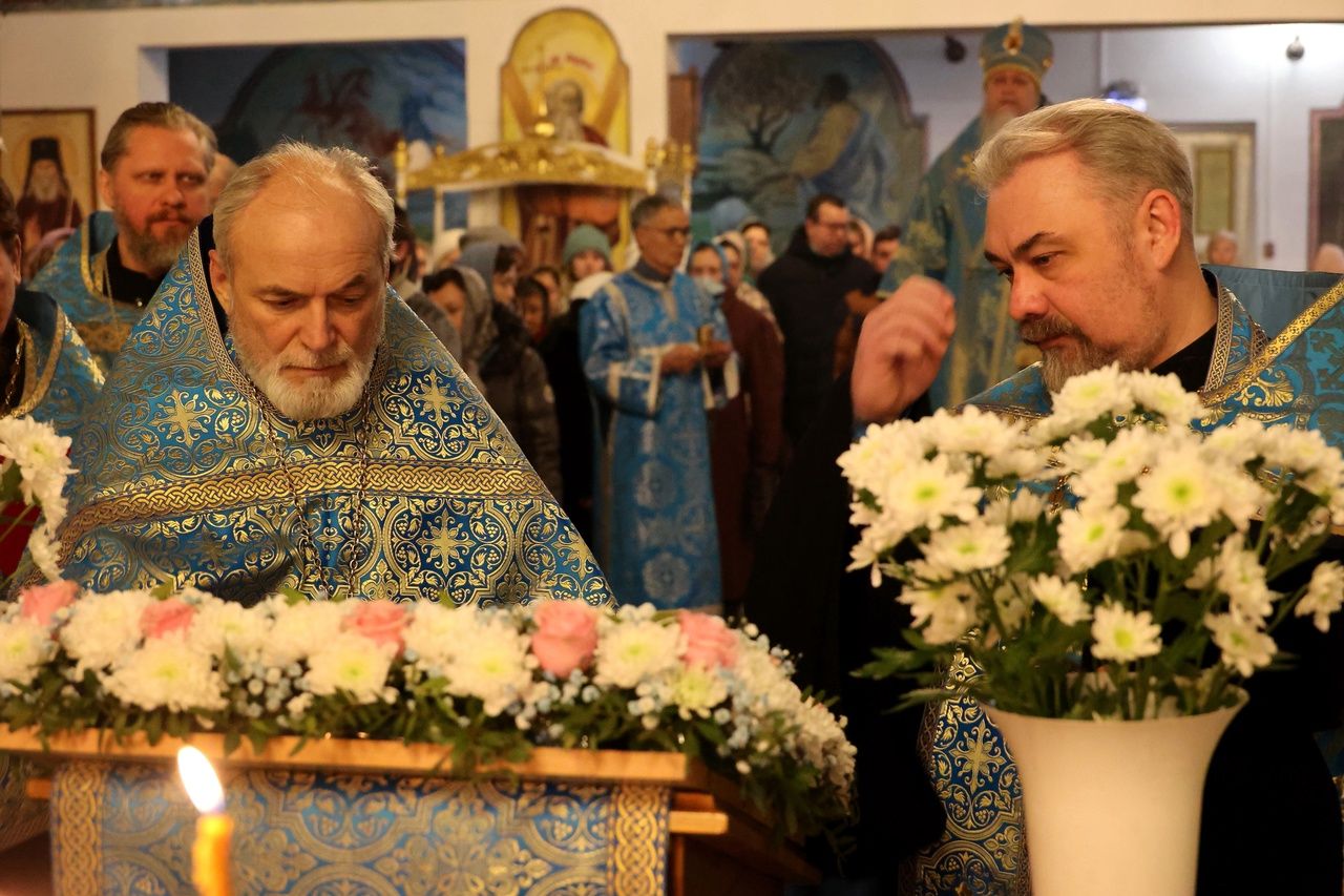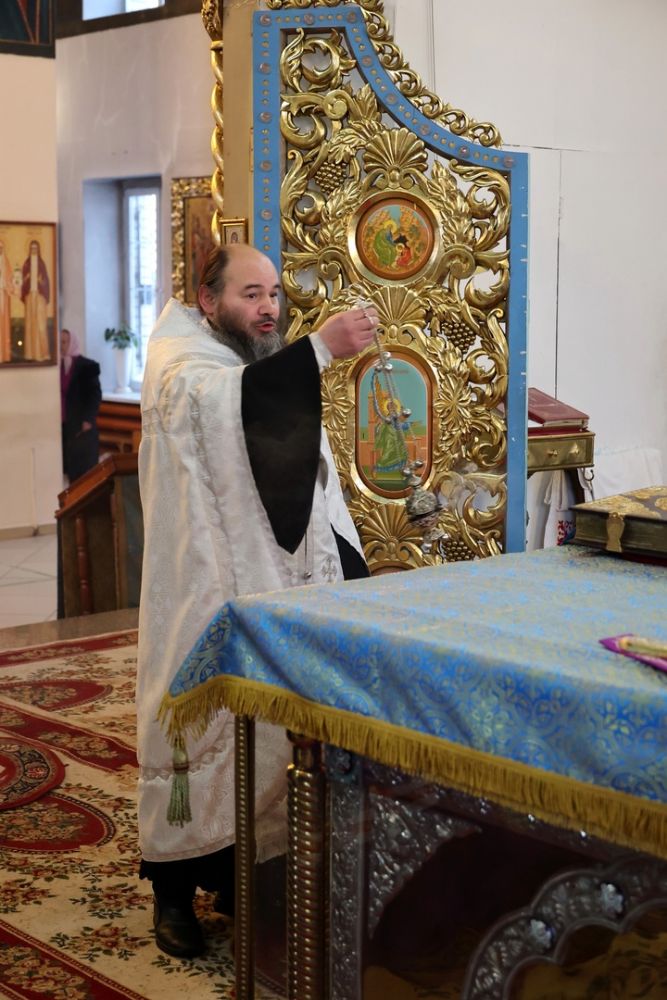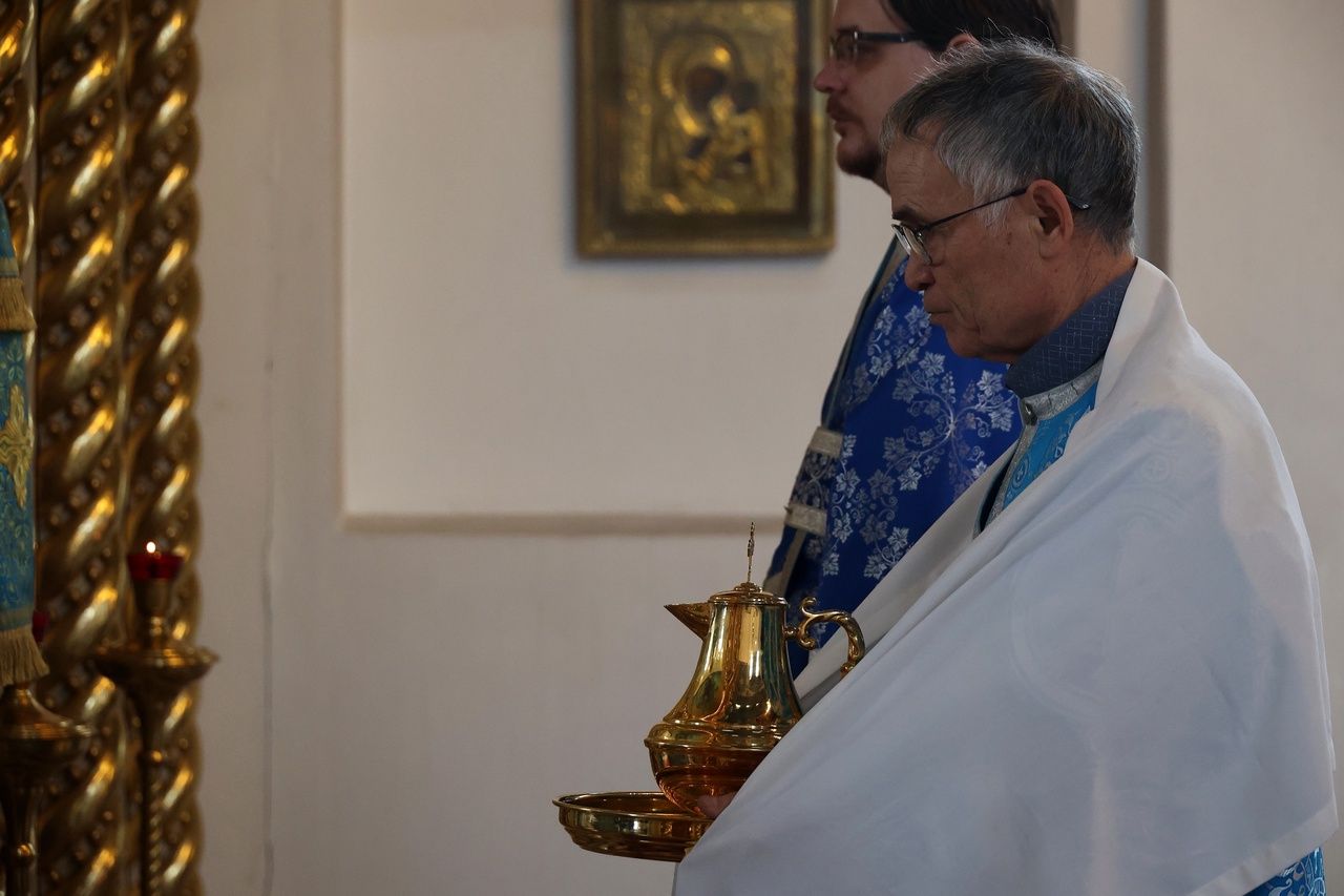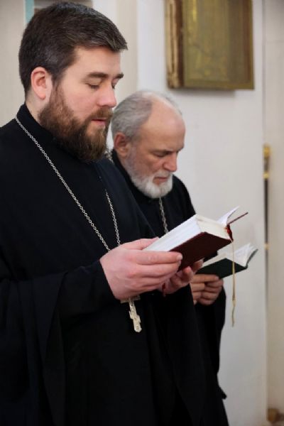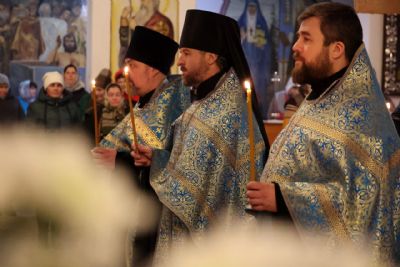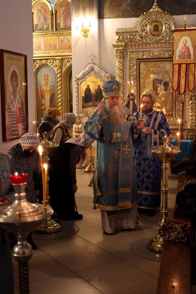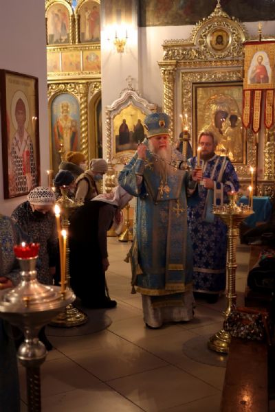 Его Преосвященству сослужили клирики собора. Пел малый состав архиерейского хора.