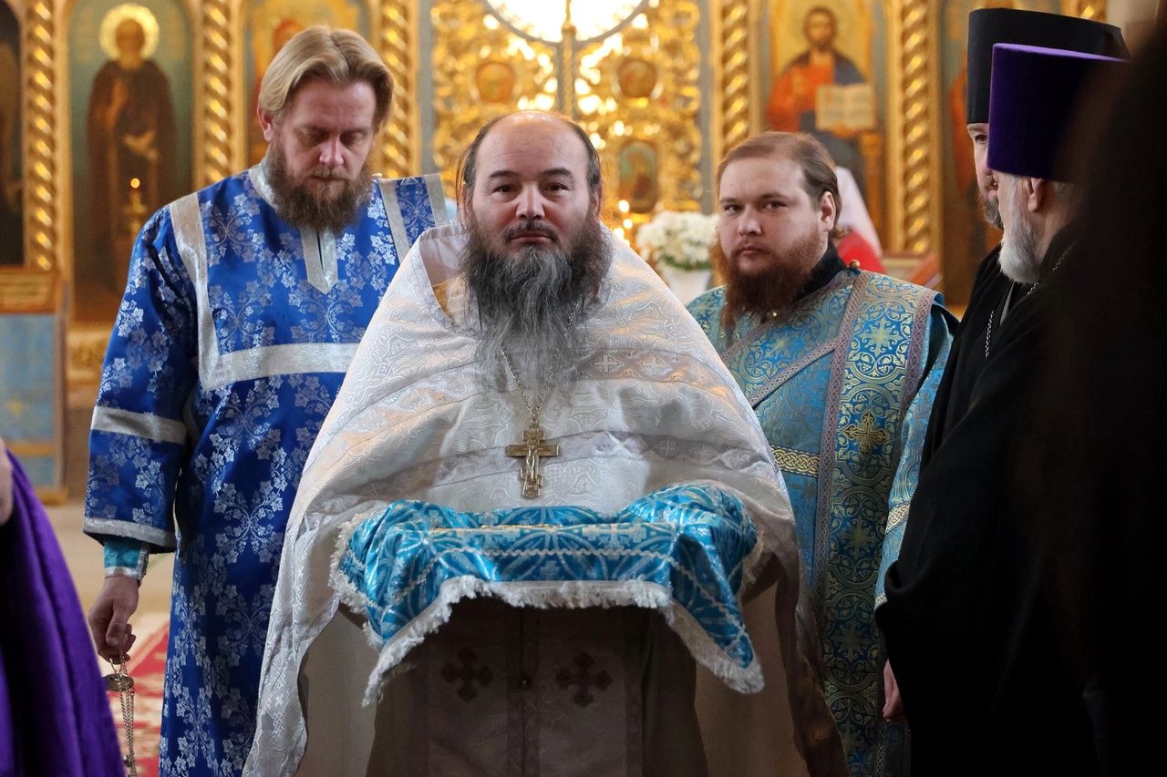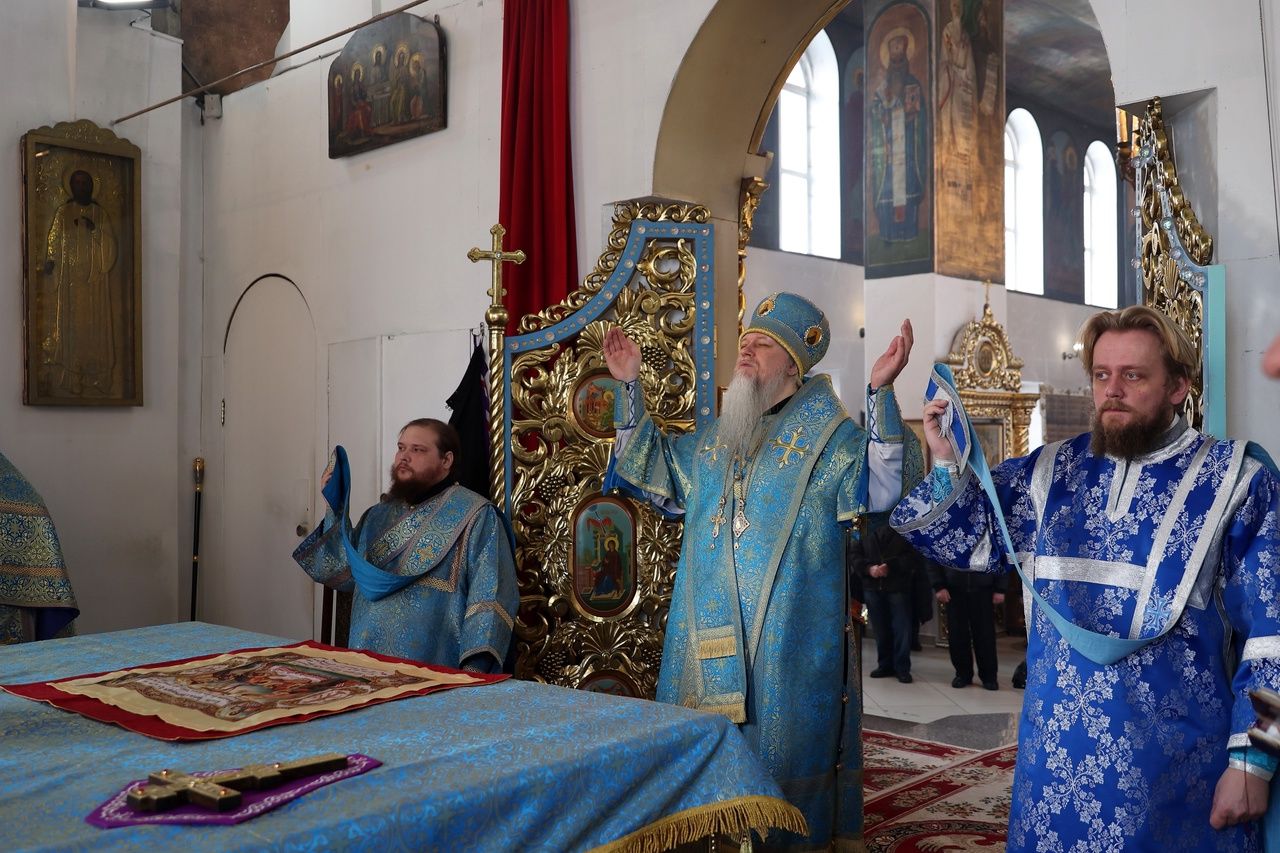 15 февраля, в праздник Сретения Господа Бога и Спаса нашего Иисуса Христа, Епископ Волжский и Сернурский Феофан совершил Божественную литургию в Никольском кафедральном соборе г. Волжска. Накануне владыка возглавил здесь же всенощное бдение.