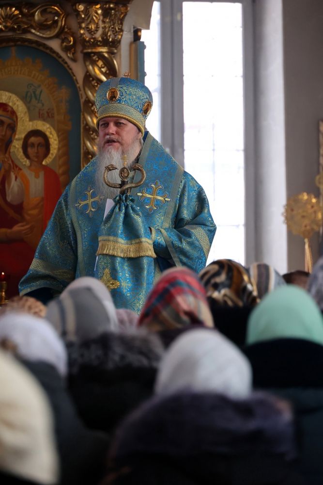 В проповеди после богослужения владыка рассказал о евангельских событиях праздника: «По ветхозаветному закону женщина, которая родила младенца мужеского пола, должна была на сороковой день принести новорожденного младенца в храм, чтобы принести Богу благодарственную и очистительную жертву. В это время в Иерусалиме жил благочестивый старец Симеон, который во время правления греческого царя Птоломея был одним из семидесяти толковников, то есть переводчиков Священного Писания с еврейского на греческий.