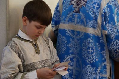 После Литургии было совершено славление празднику Сретения Господня, затем епископ Феофан огласил обращение Святейшего Патриарха Московского и всея Руси Кирилла по случаю Дня православной молодежи.