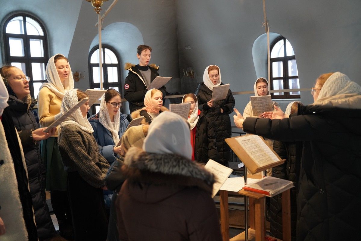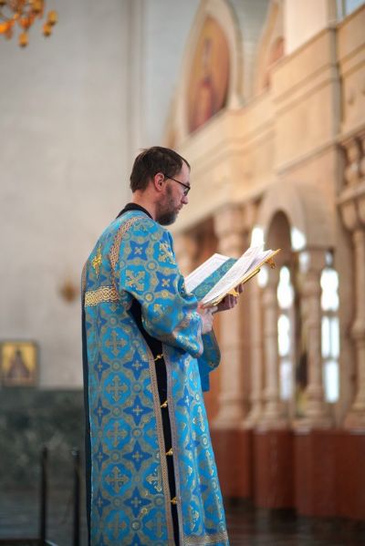 Архипастырю сослужили секретарь Йошкар-Олинского епархиального управления иеромонах Серафим (Пасанаев), ключарь кафедрального собора протоиерей Сергий Поглазов, клирики собора и протодиакон Михаил Козловский. Песнопения исполнял хор «Благовест» под управлением регента Татьяны Черновой.