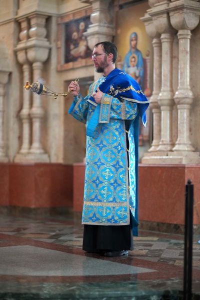 По запричастном стихе иеромонах Серафим огласил обращение Святейшего Патриарха Московского и всея Руси Кирилла по случаю Дня православной молодежи.