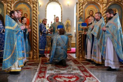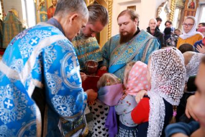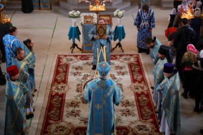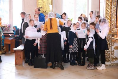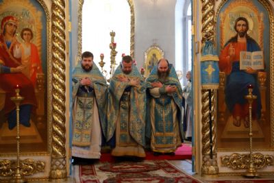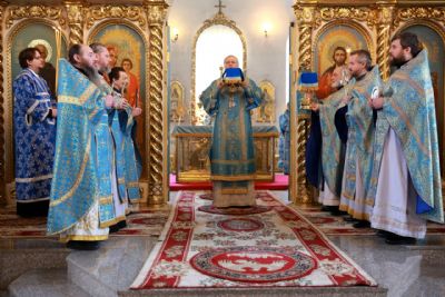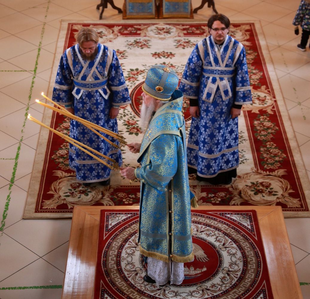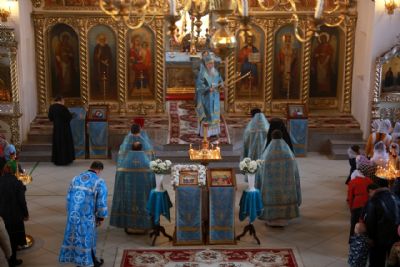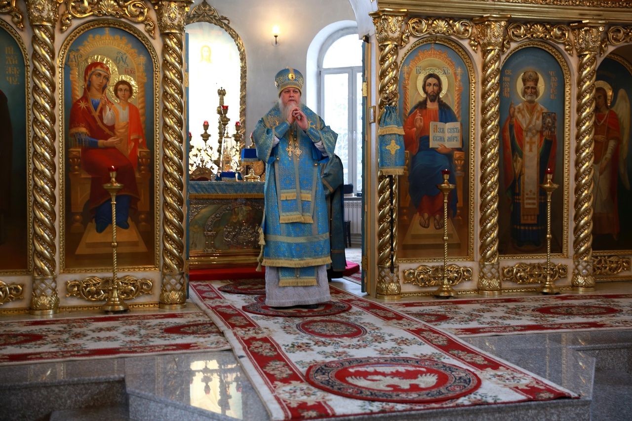 Его Преосвященству сослужили клирики собора, песнопения исполняли два хора –архиерейский и детско-юношеский.
