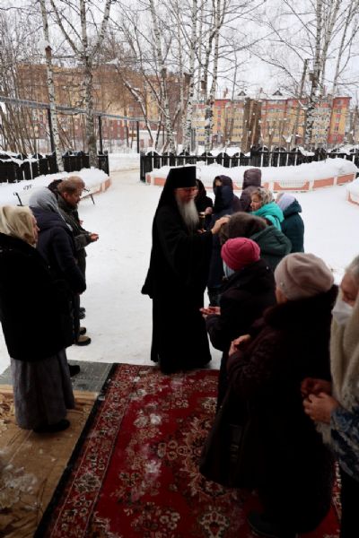 «Сегодня, по милости Божией, мы с вами собрались в этом святом храме, чтобы вновь прославить Христа Жизнодавца и Его Пречистую Матерь. Мы продолжаем праздновать праздник Сретения Господа нашего Иисуса Христа. И сегодня в этом храме престольный праздник в честь иконы Божией Матери «Взыскание погибших».