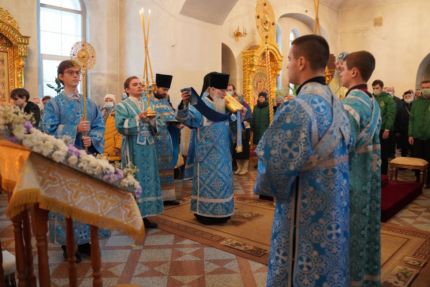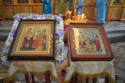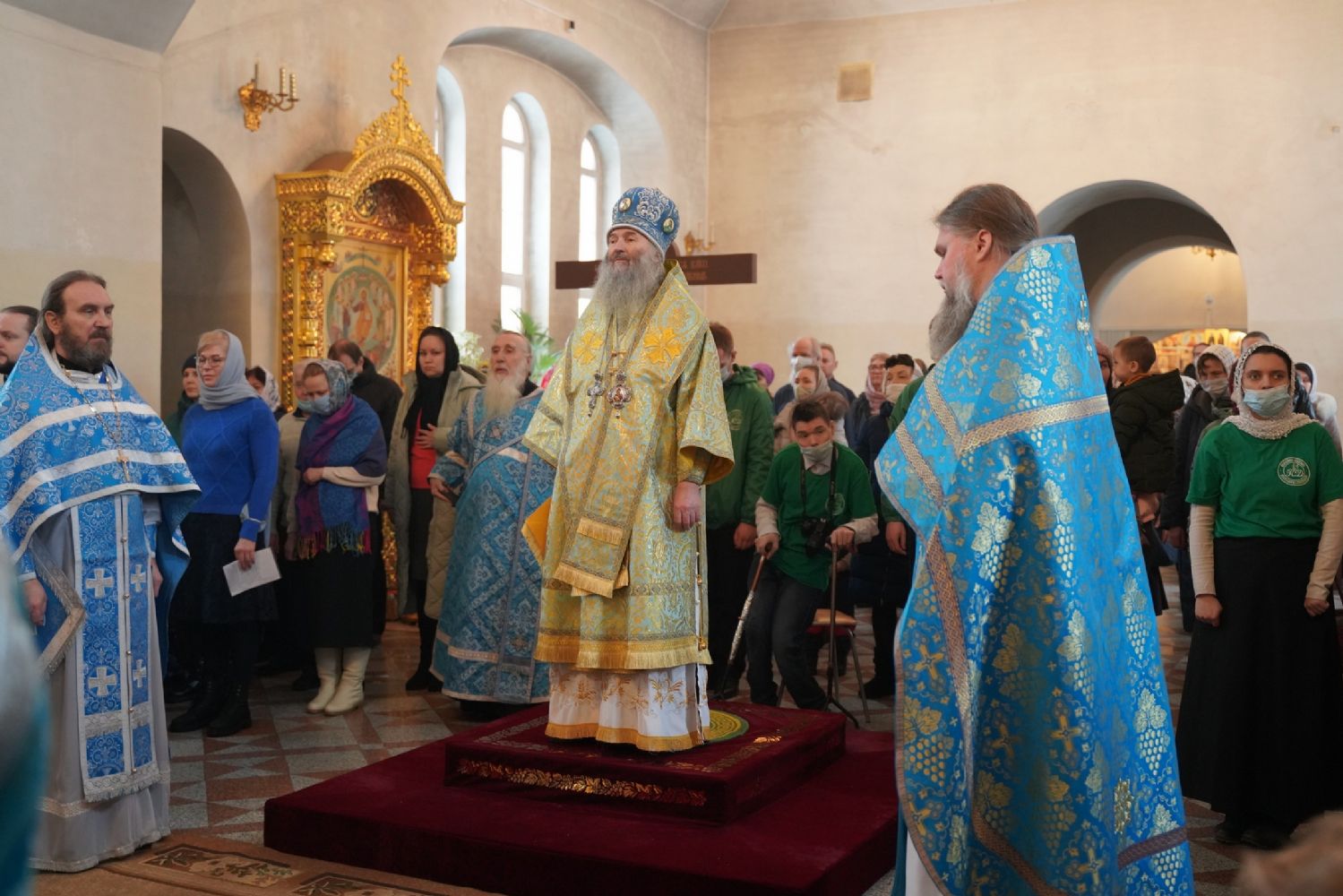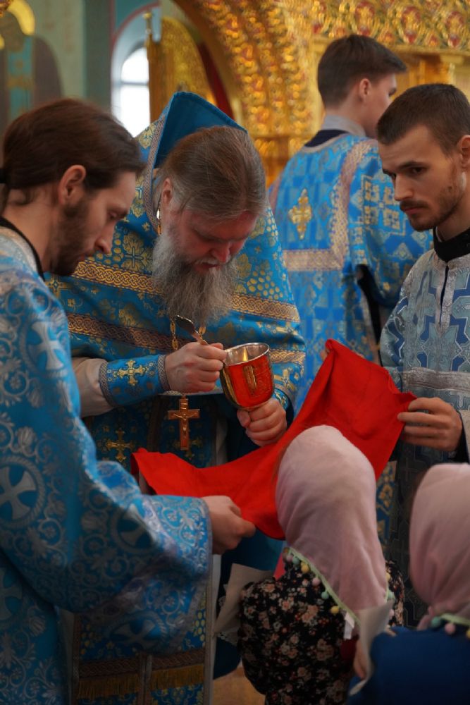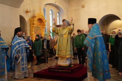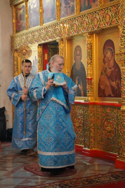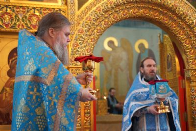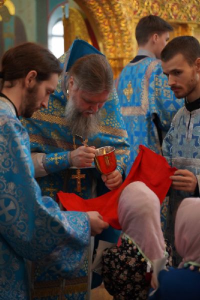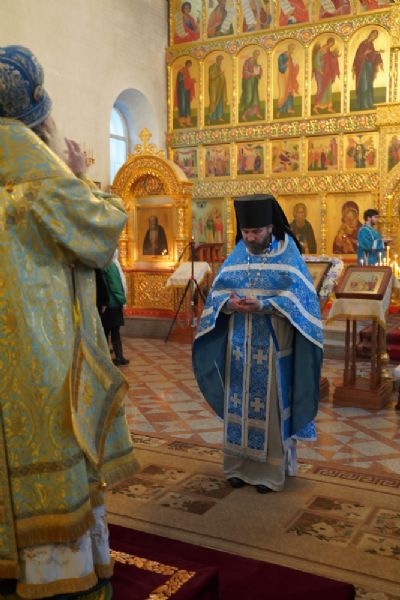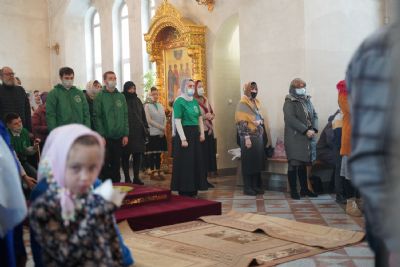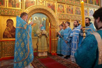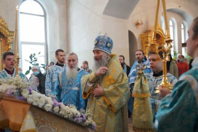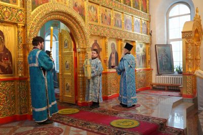 Его Высокопреосвященству сослужили секретарь Йошкар-Олинского епархиального управления иеромонах Серафим (Пасанаев), настоятель храма протоиерей Александр Бачурин, клирики храма и протодиакон Михаил Козловский. Пел хор храма под управлением регента Елены Умрихиной.