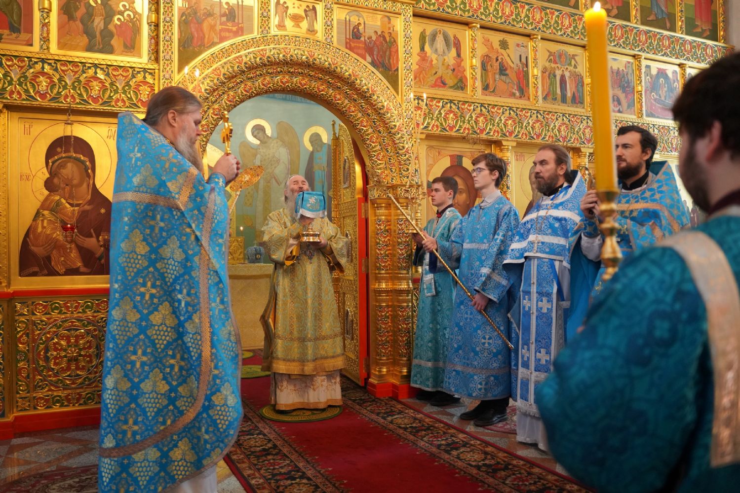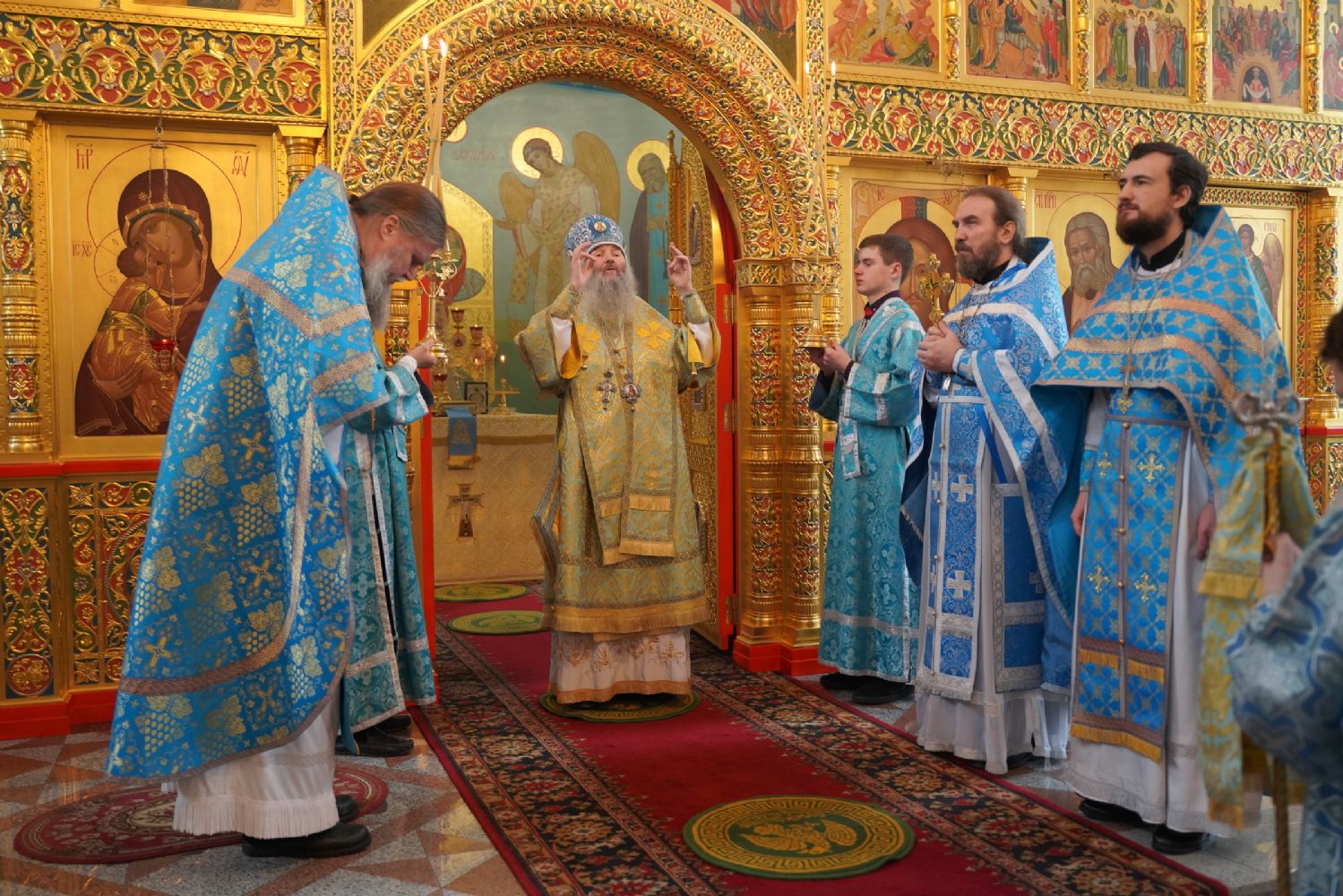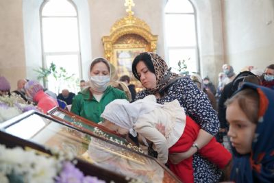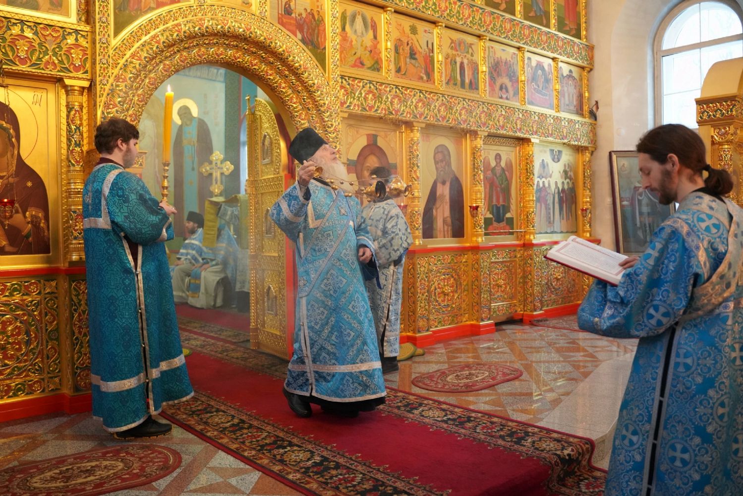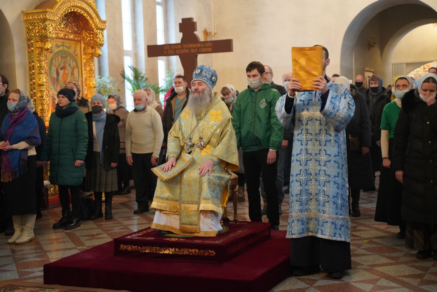 Его Высокопреосвященству сослужили секретарь Йошкар-Олинского епархиального управления иеромонах Серафим (Пасанаев), настоятель храма протоиерей Александр Бачурин, клирики храма и протодиакон Михаил Козловский. Пел хор храма под управлением регента Елены Умрихиной.