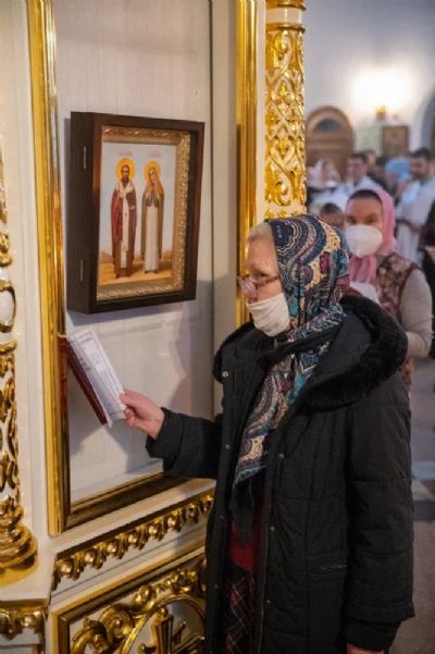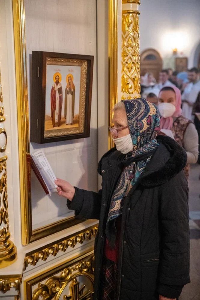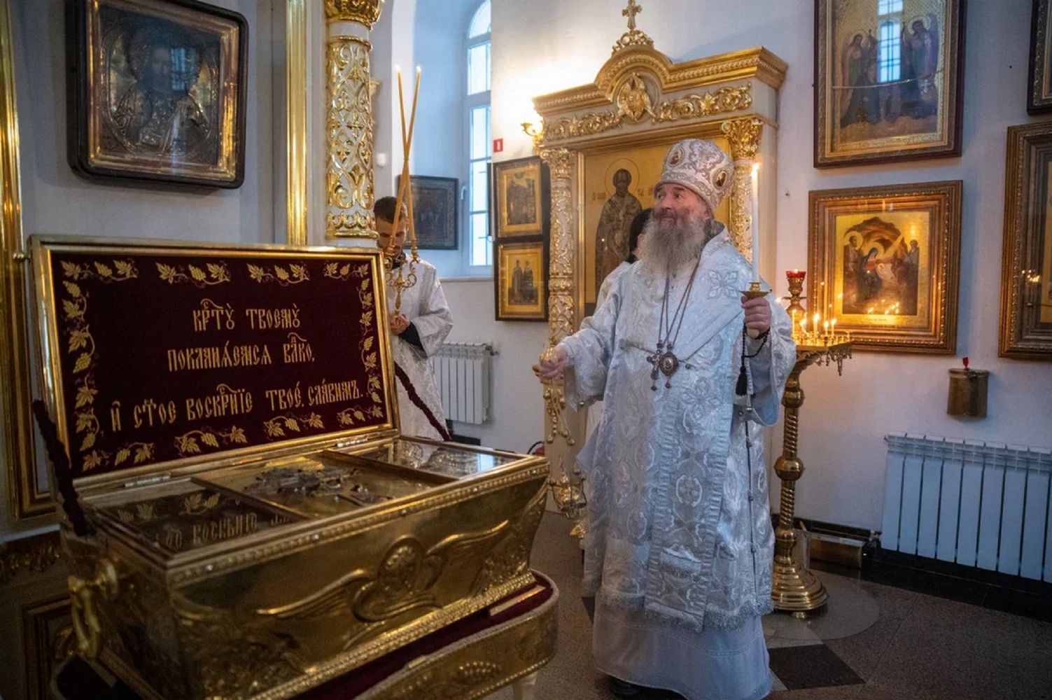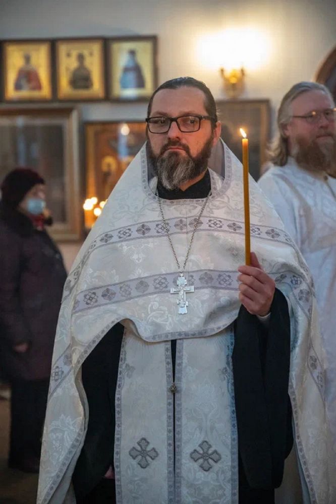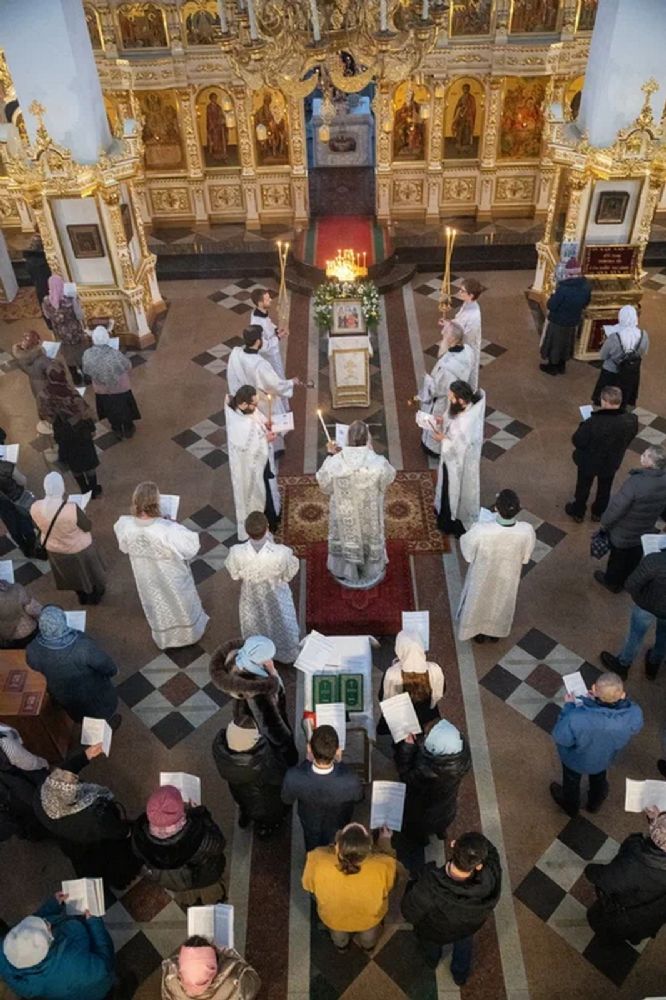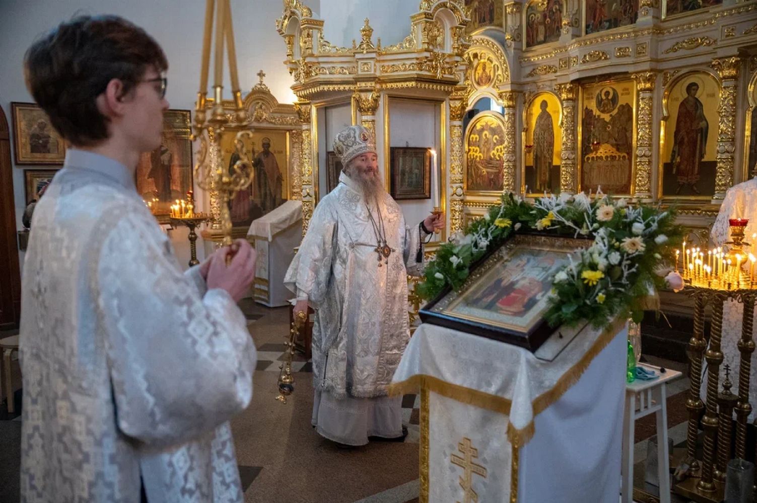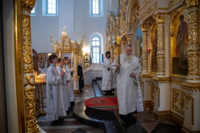 Архипастырю сослужили клирики храма иерей Никита Смирнов, иерей Димитрий Дьяков и диакон Артемий Бобоч, а также протодиакон Михаил Козловский.