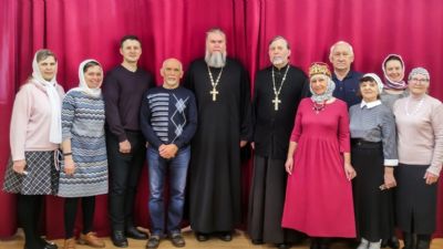 Поэтому коллектив действующей при храме воскресной школы «Радость моя» каждый год готовится к этому празднику. К сожалению, в нынешнем году детские занятия в школе из-за ковидных ограничений пока приостановлены, и чествовать защитников Отечества в минувшее воскресенье собрались только преподаватели – их женская половина.