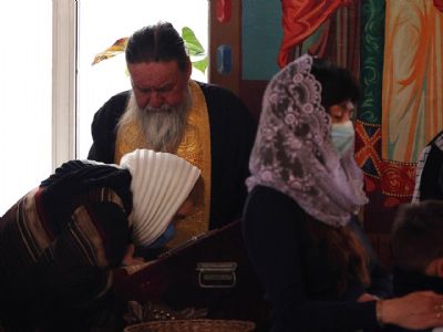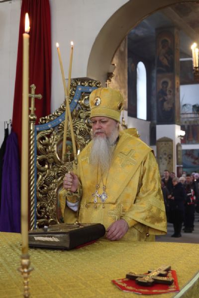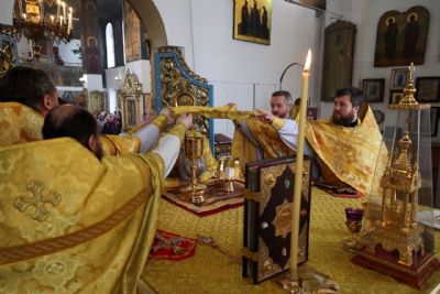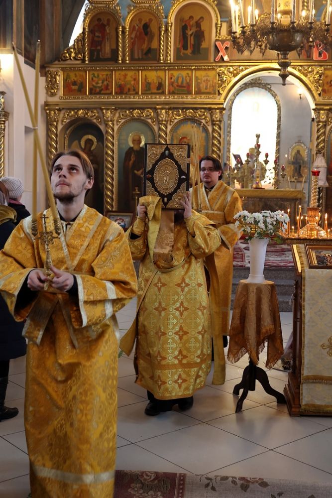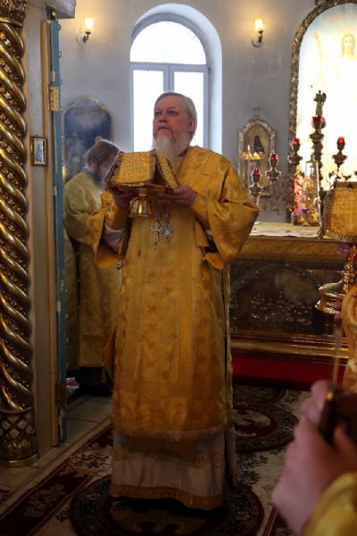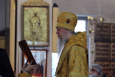 По окончании Литургии епископ Феофан зачитал Послание Святейшего Патриарха Кирилла, посвященное 100-летию подвига новомучеников и исповедников Церкви Русской при изъятии церковных ценностей.