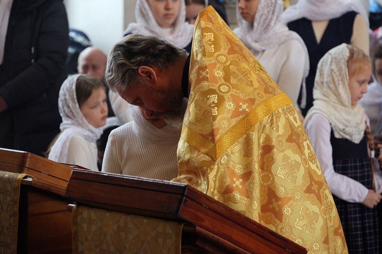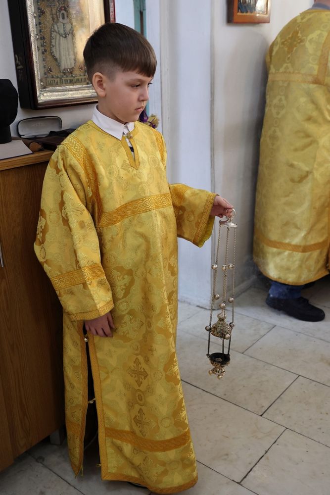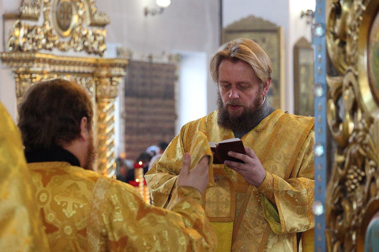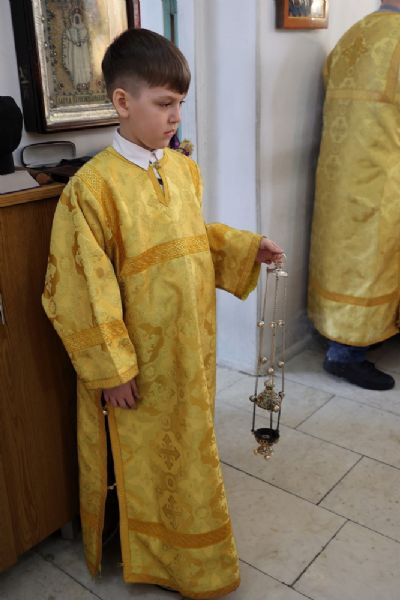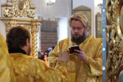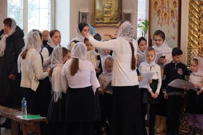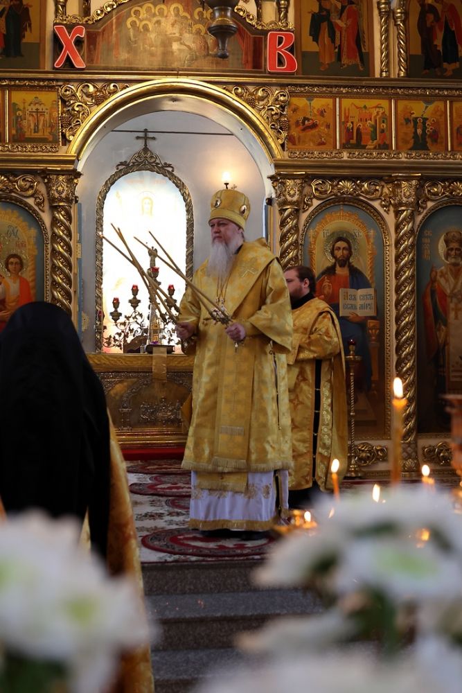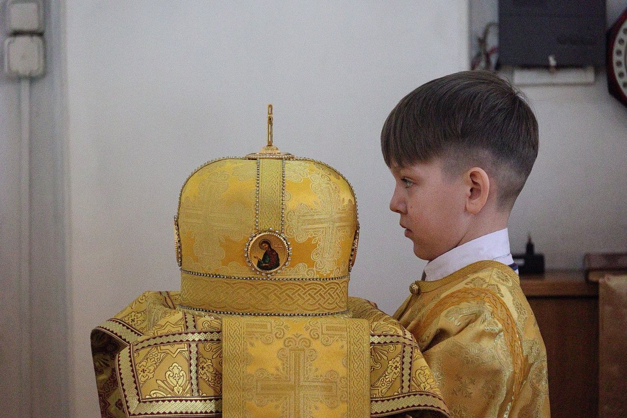 Его Преосвященству сослужили клирики собора. Песнопения исполнили два хора: архиерейский и детско-юношеский.