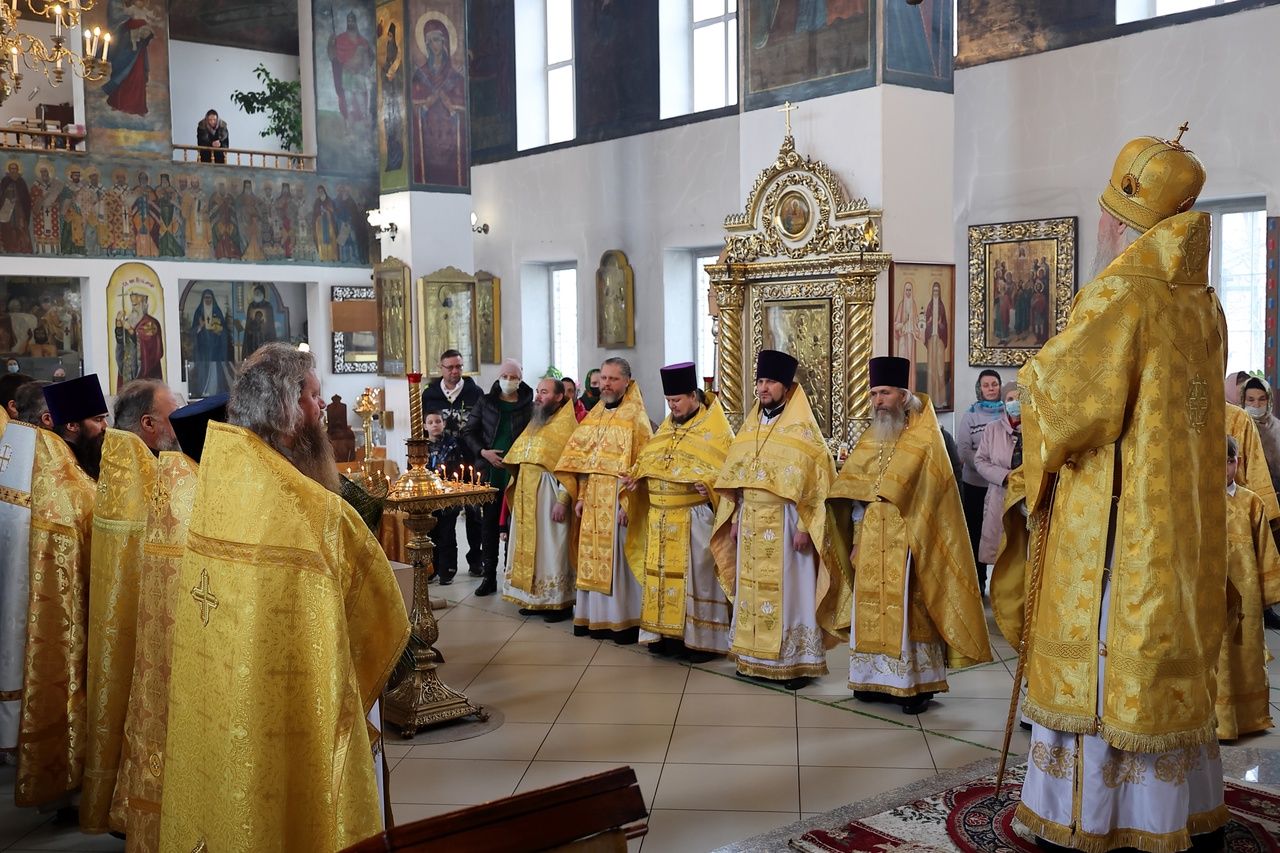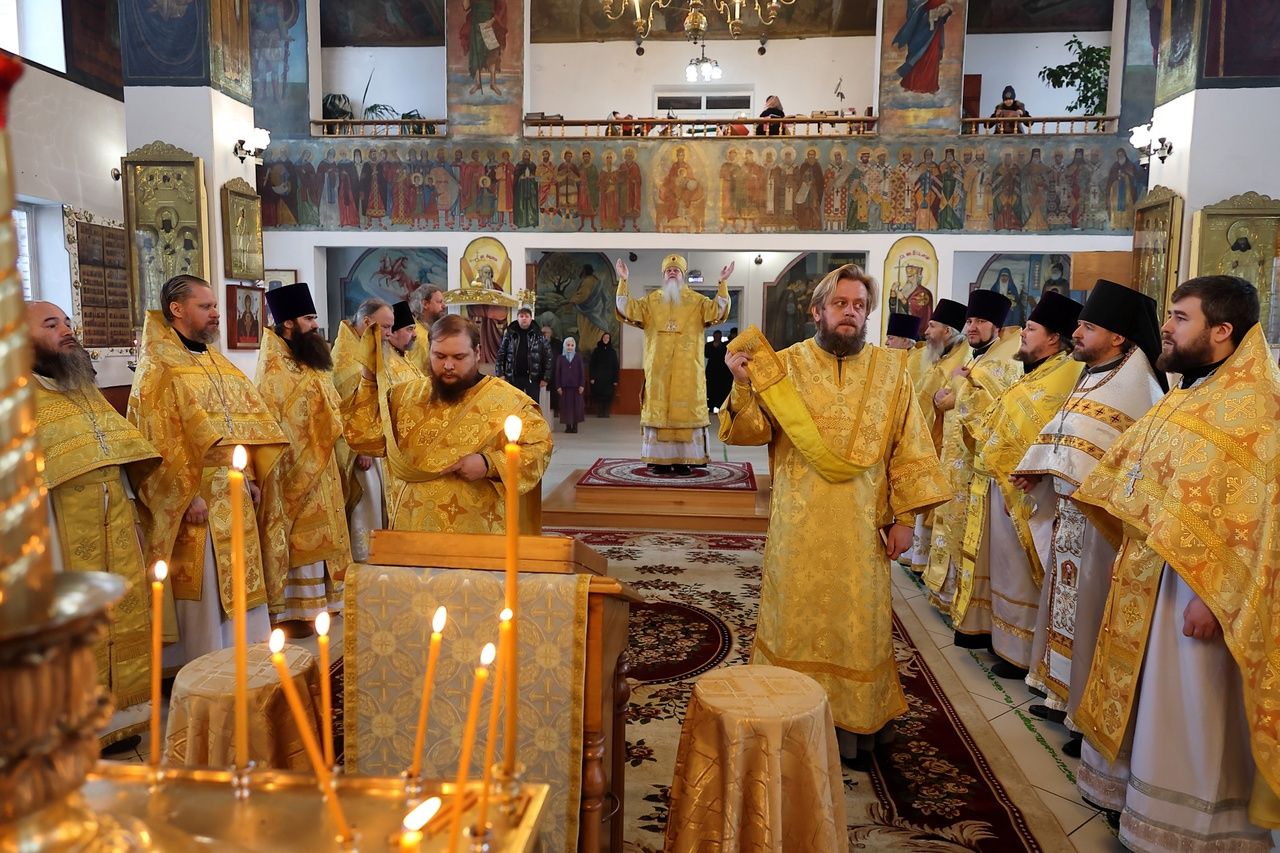 28 февраля, в понедельник Сырной седмицы, день памяти апостола от 70-ти Онисима, епископ Волжский и Сернурский Феофан совершил Божественную литургию в Никольском кафедральном соборе г. Волжска.