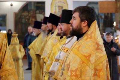 Его Преосвященству сослужили настоятель Спасо-Преображенского Пронского мужского монастыря Рязанской епархии игумен Лука (Степанов) и клирики Волжской епархии. Пел хор под управлением Тимофея Протасова.