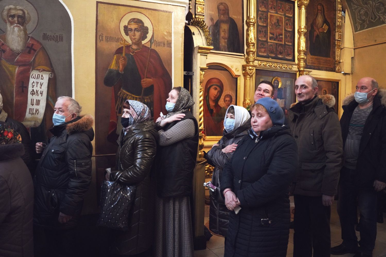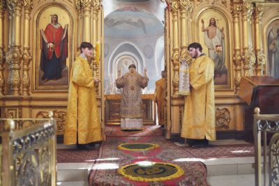 Его Высокопреосвященству сослужили ключарь храма протоиерей Михаил Ильин, клирики храма Сергий Асланов, протодиакон Михаил Козловский и диакон Димитрий Смирнов. Песнопения исполнял хор храма.