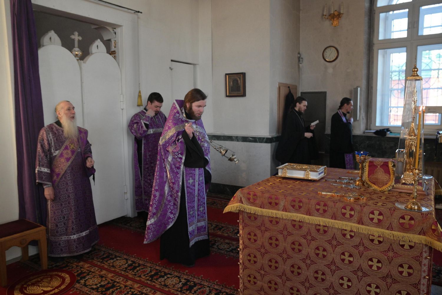 Богослужение началось в 7 часов с утрени. Третий, шестой, девятый часы, служба изобразительных и вечерня были отслужены с чтением положенных по уставу кафизм, поклонов с молитвой Ефрема Сирина и паремией из книги пророка Исаии о грехах народа и богоугодном посте.