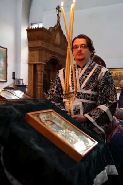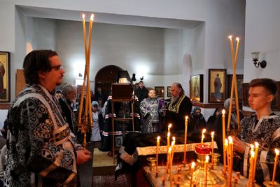 Его Преосвященству сослужили настоятель храма протоиерей Александр Михайлов и клирики кафедрального собора. Богослужебные песнопения исполнял хор Скорбященского храма под управлением Ирины Канашиной.
