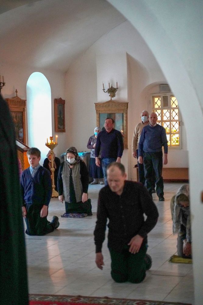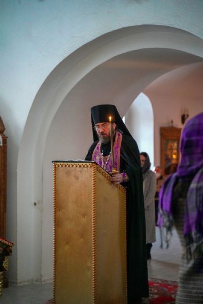 За богослужением читалась третья часть Великого покаянного канона преподобного Андрея Критского.