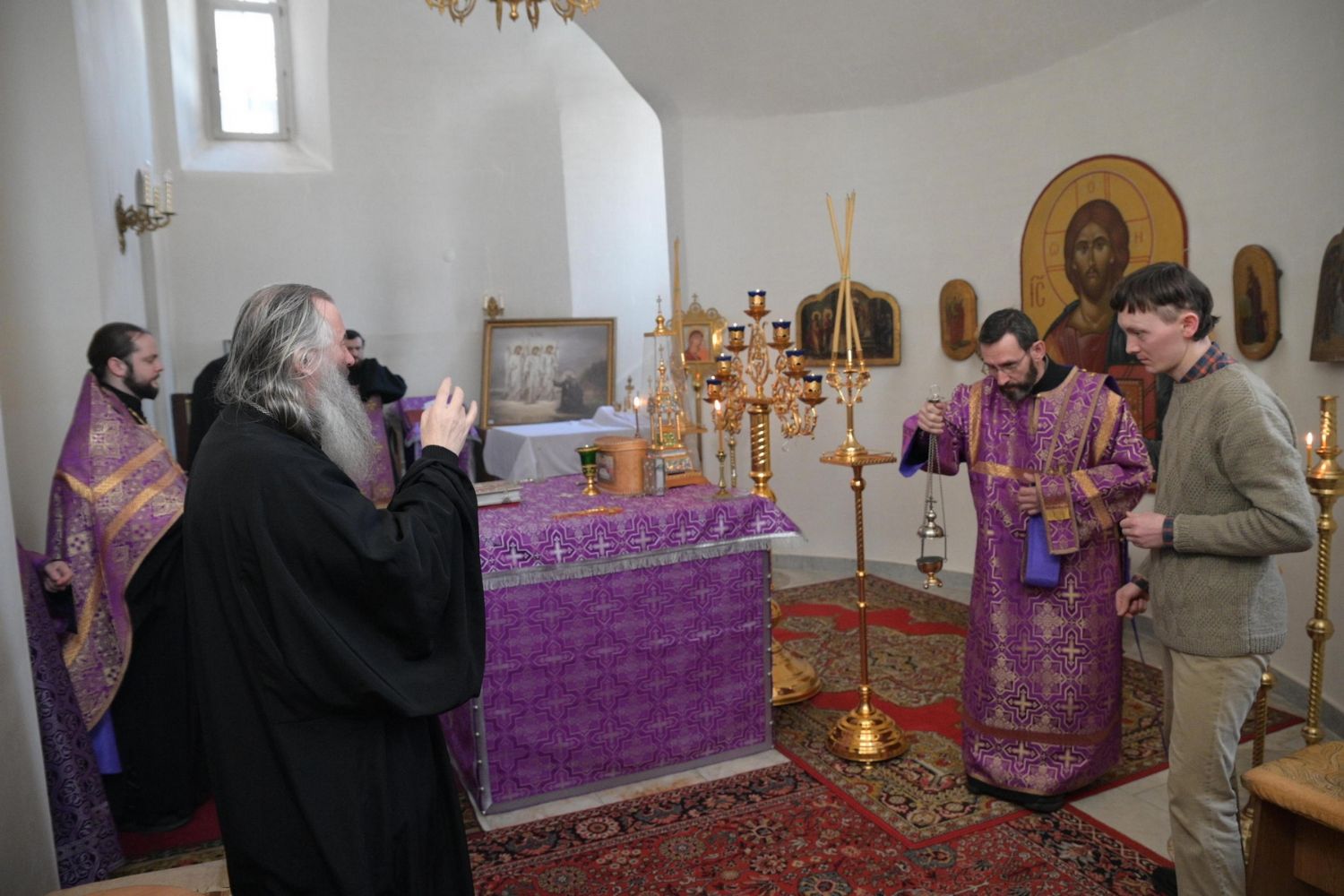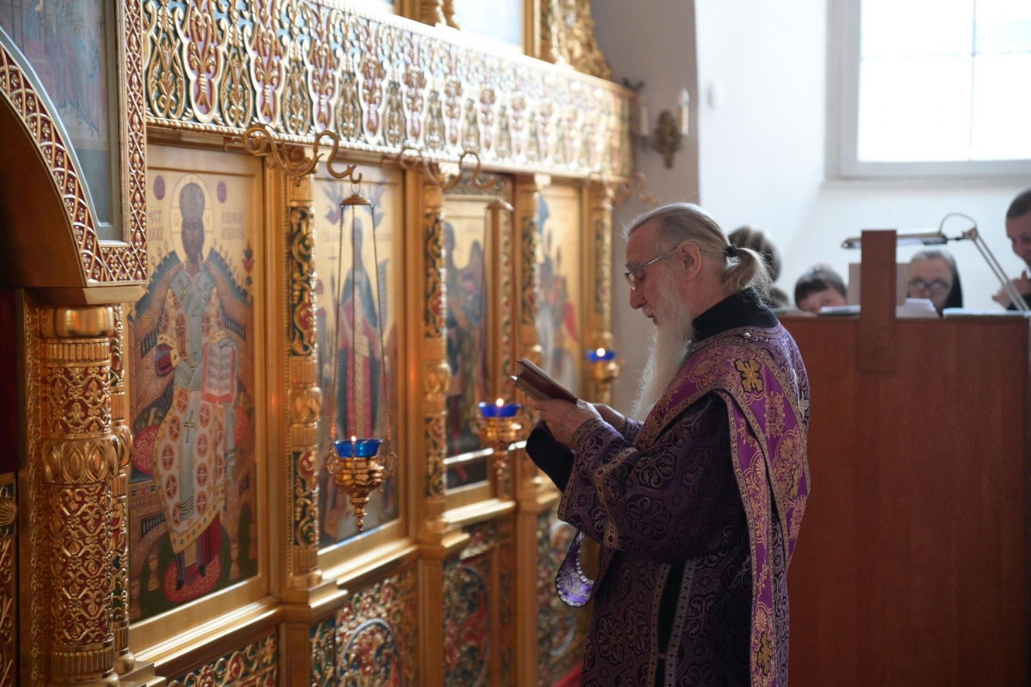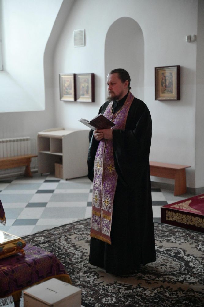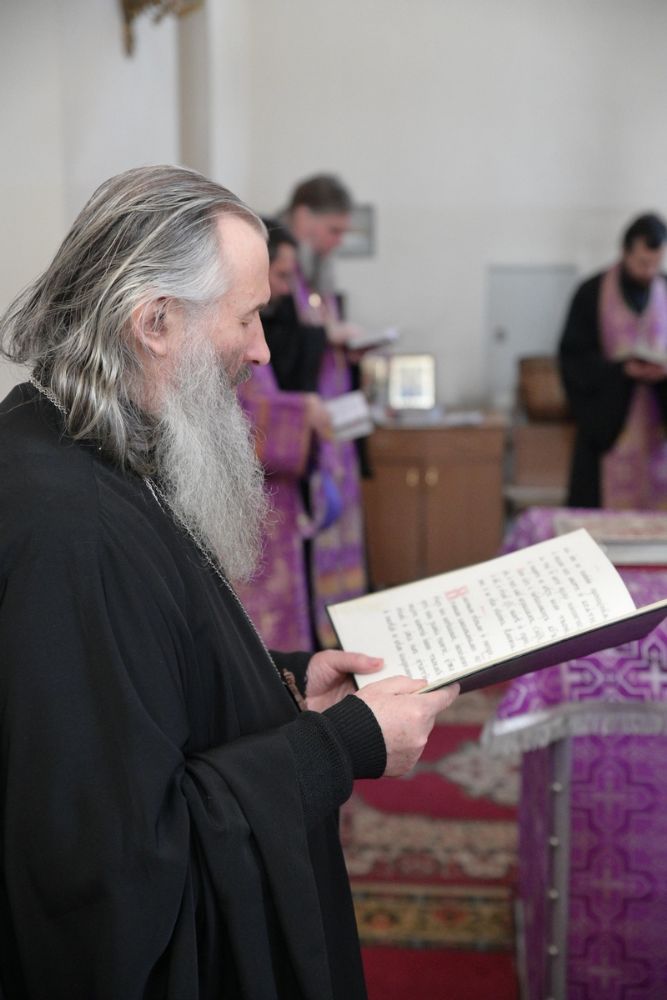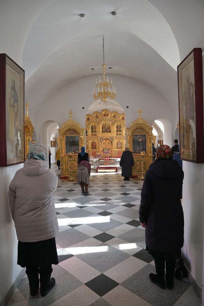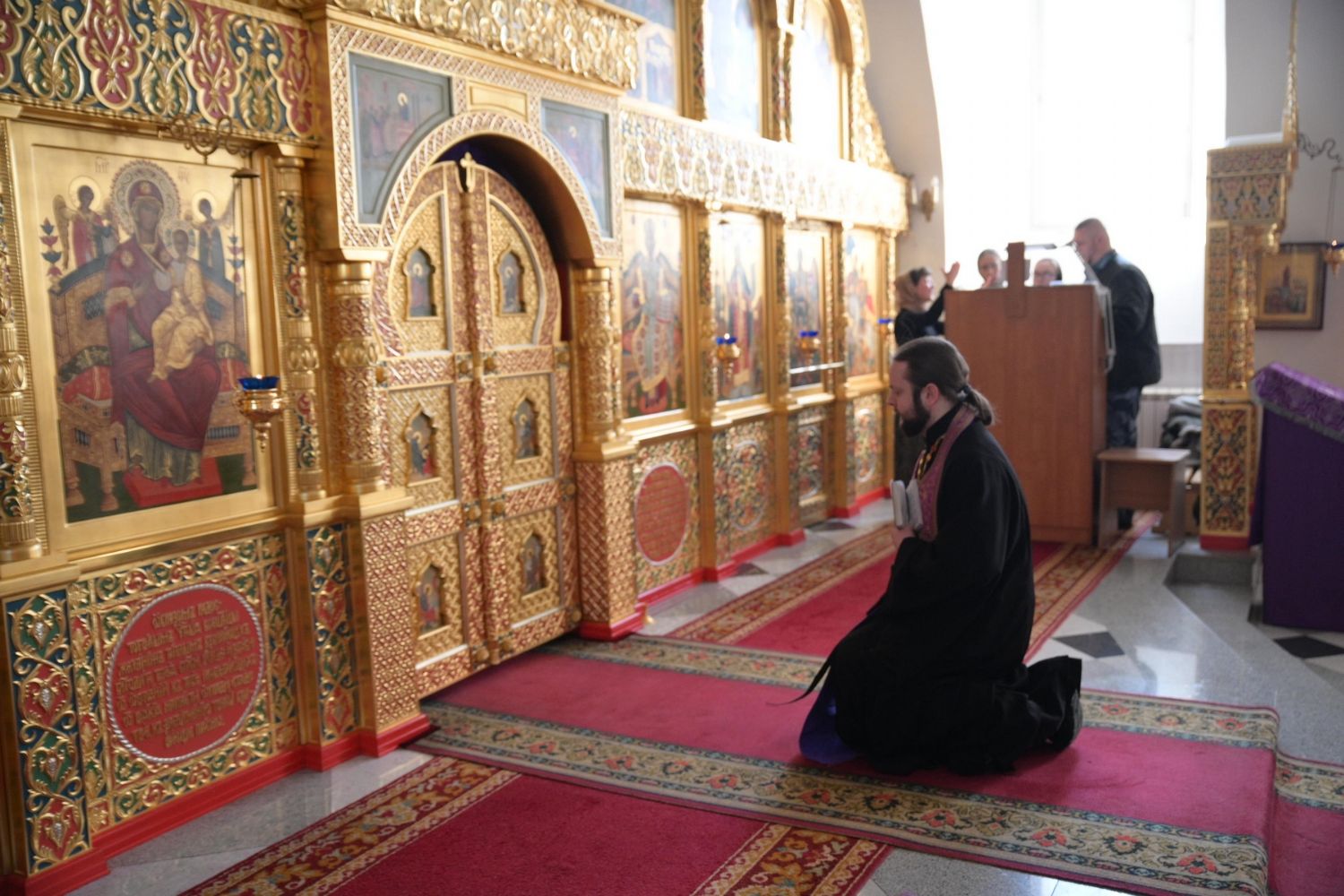 Богослужение возглавлял настоятель храма протоиерей Александр Бачурин. Ему сослужили клирики храма и протодиакон Михаил Козловский. Песнопения исполнял хор под руководством регента Ирины Айгловой.Великим постом в будние дни на утрене поются библейские песни: три песни полностью (одна из первых пяти, соответствующая дню недели, и восьмая с девятой). Таким образом, сегодня прихожане слышали песнь пророка Аввакума из одноименной книги Ветхого Завета, песнь отроков в печи вавилонской из книги пророка Даниила и новозаветные песни Пречистой Девы Марии и Захарии из Евангелия от Луки.