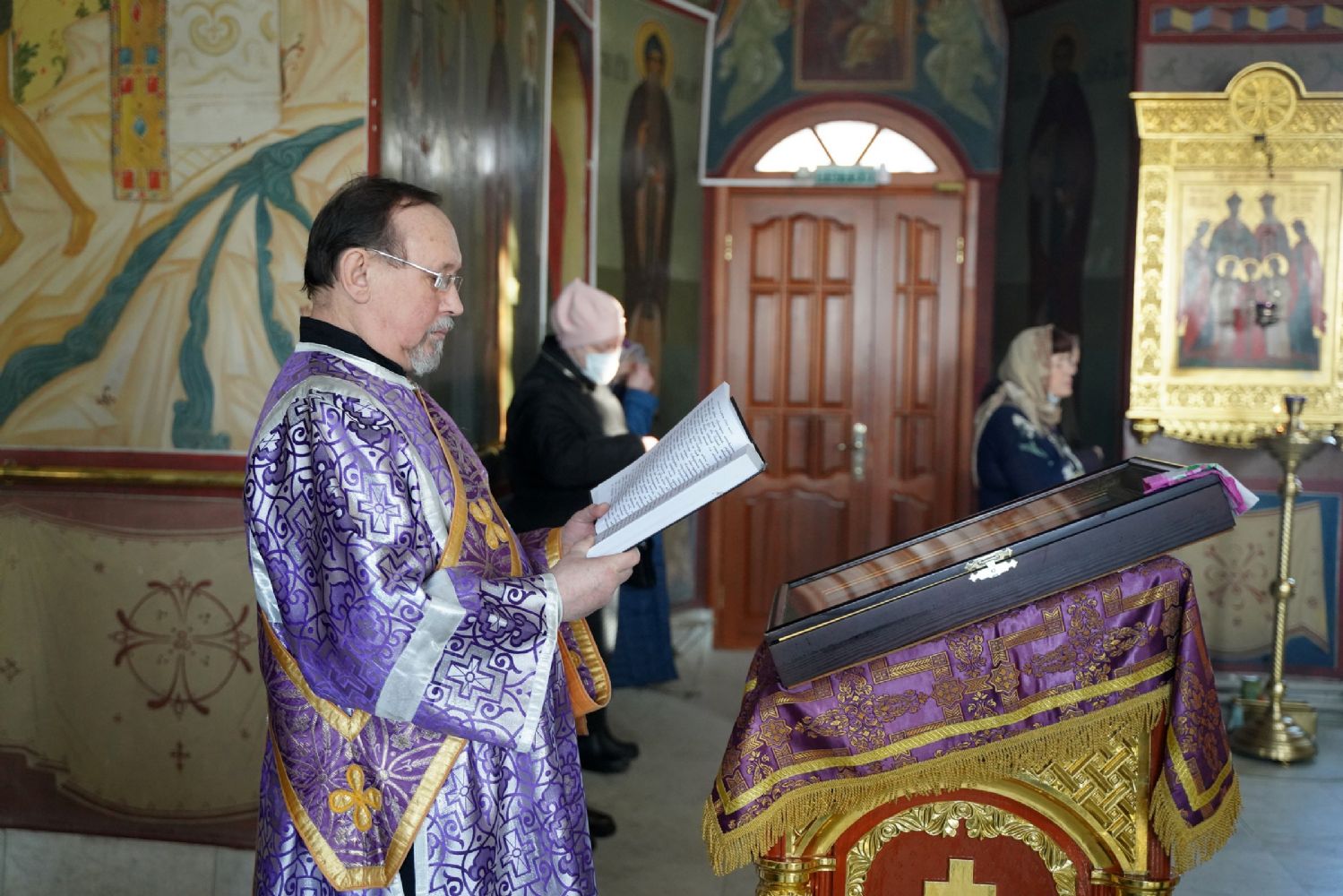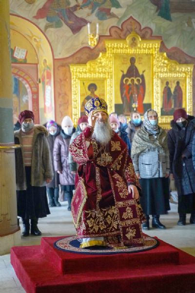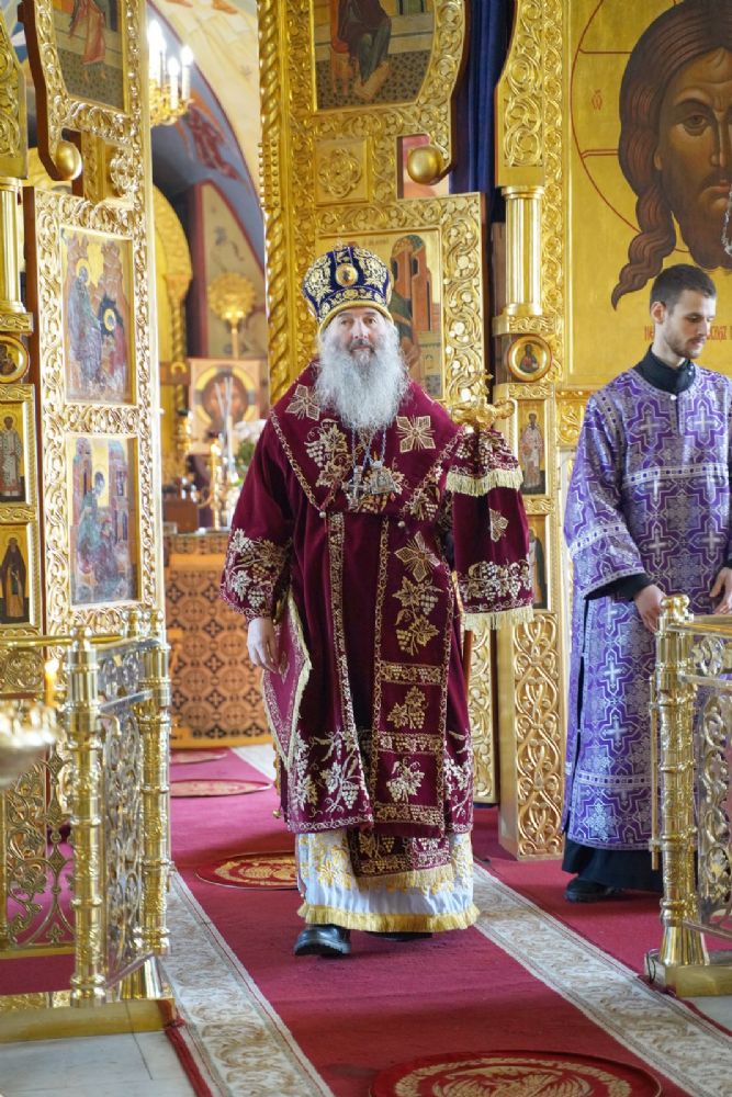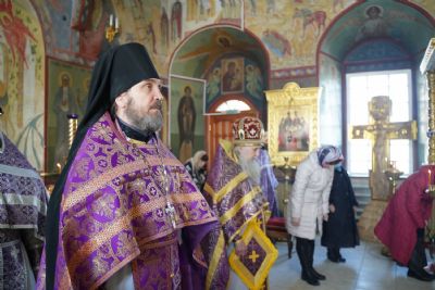 Его Высокопреосвященству сослужили секретарь Йошкар-Олинского епархиального управления иеромонах Серафим (Пасанаев), настоятель собора митрофорный протоиерей Евгений Кутырев, клирики собора и протодиакон Михаил Козловский.