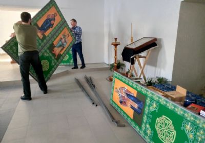 Из расположенного рядом молельного дома в новый храм, нижний его придел, верующие переселились с началом Великого поста, в понедельник. Помогли батюшке перенести необходимую мебель и утварь, навести чистоту. Мужчины установили временный иконостас. И в течение первой великопостной недели здесь совершались службы великого повечерия с чтением канона преподобного Андрея Критского.