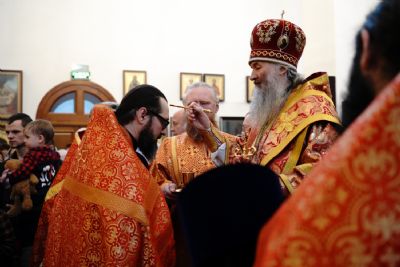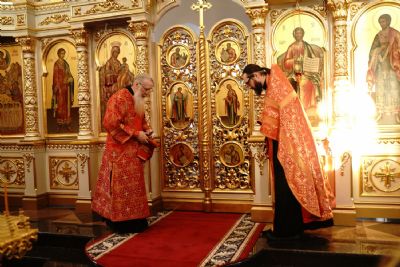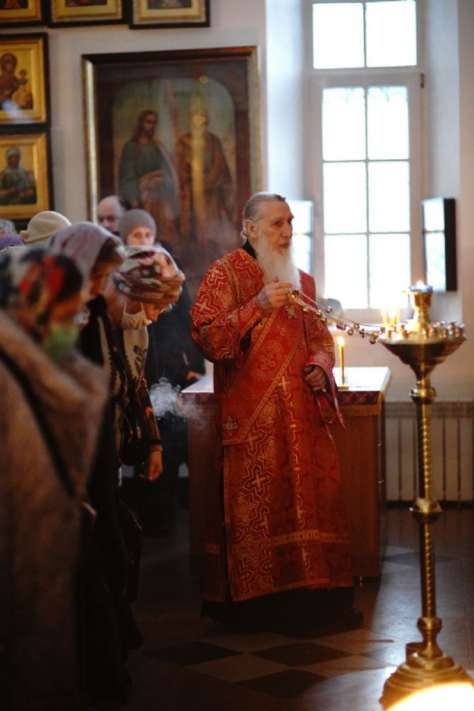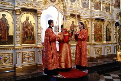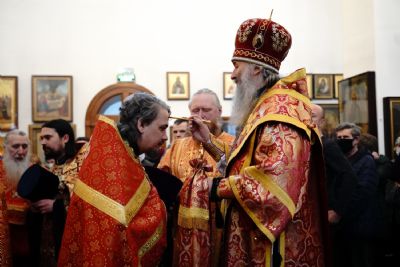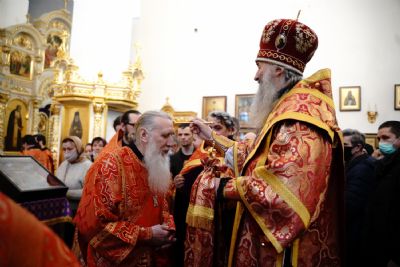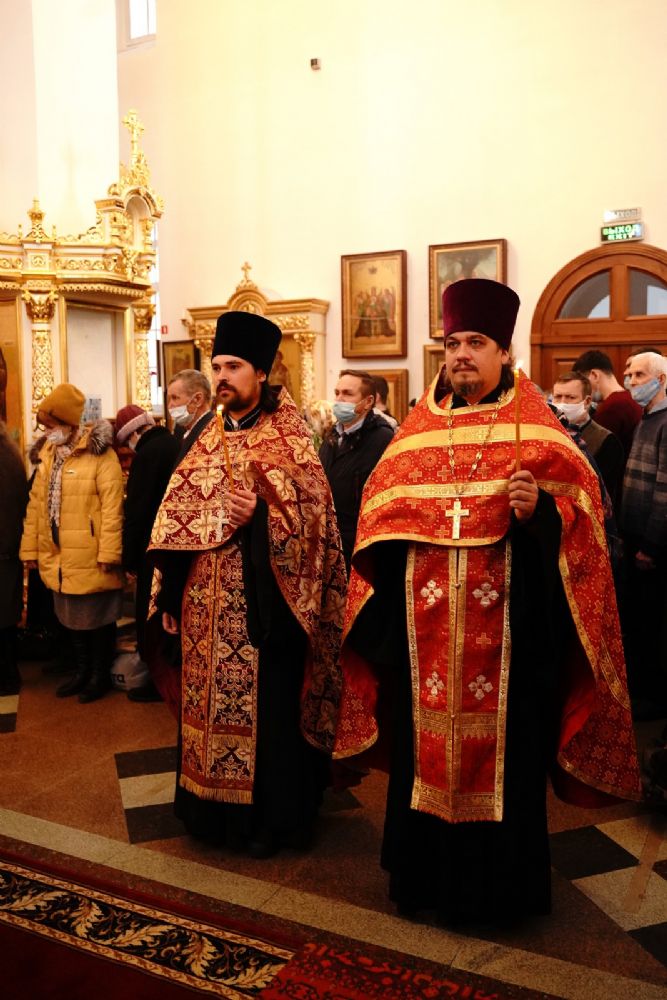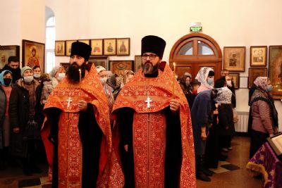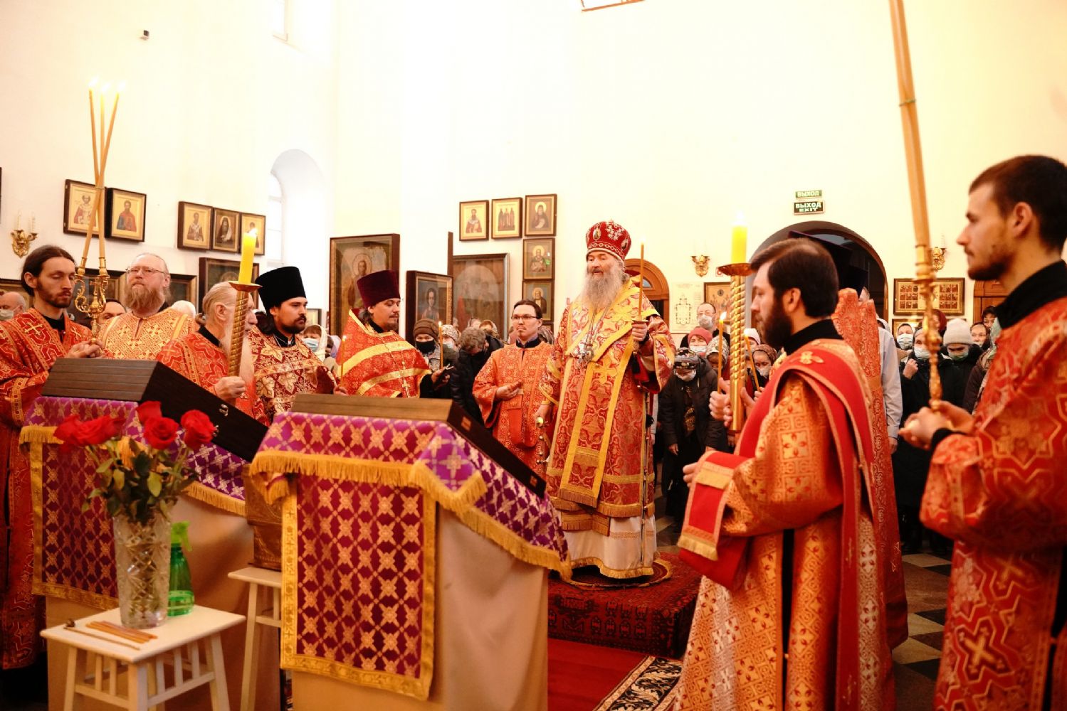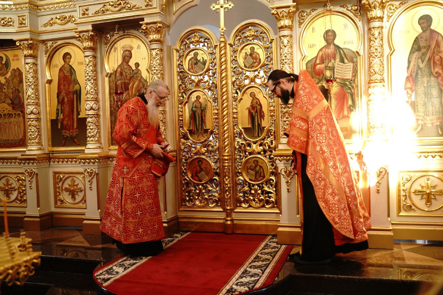 Владыке сослужили настоятель храма иерей Александр Лоскутов, клирики храма иереи Никита Смирнов, Димитрий Дьяков, Евгений Симаков, диаконы Артемий Бобоч, Димитрий Кудряшов, а также протодиакон Михаил Козловский. Песнопения исполнял хор храма под управлением регента Наталии Поповой.