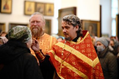 11 марта вечером, накануне дня памяти великомученика Феодора Тирона и празднования первого и второго обретения главы Иоанна Предтечи, митрополит Йошкар-Олинский и Марийский Иоанн возглавил малое повечерие и полиелейную утреню в храме Рождества Христова г. Йошкар-Олы.