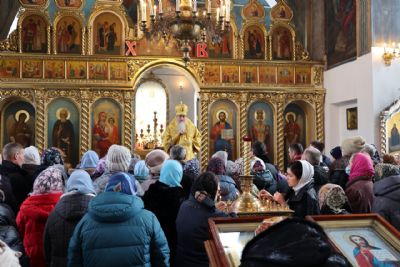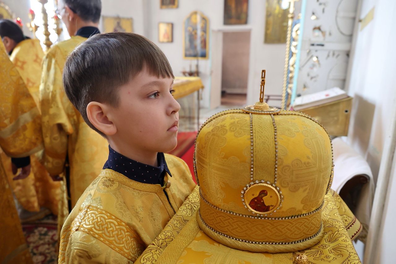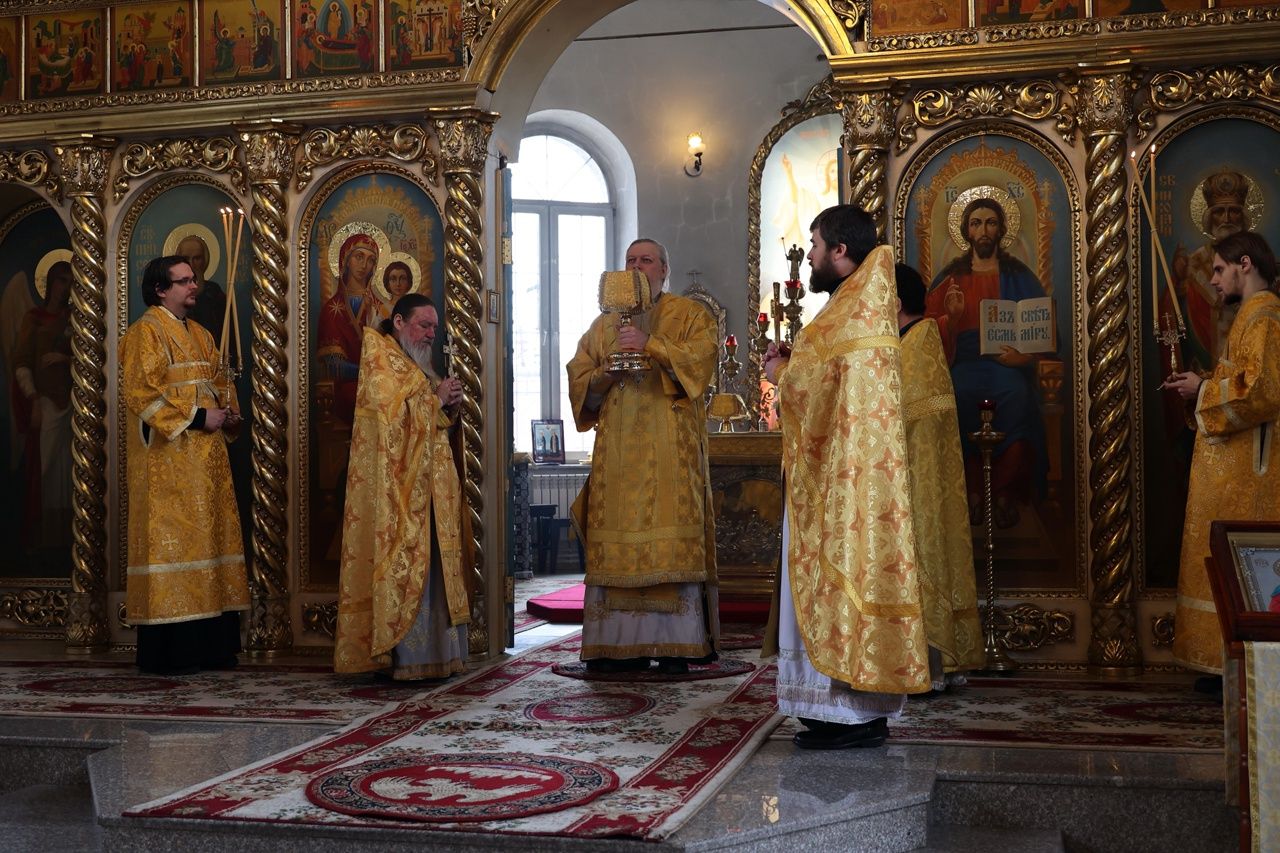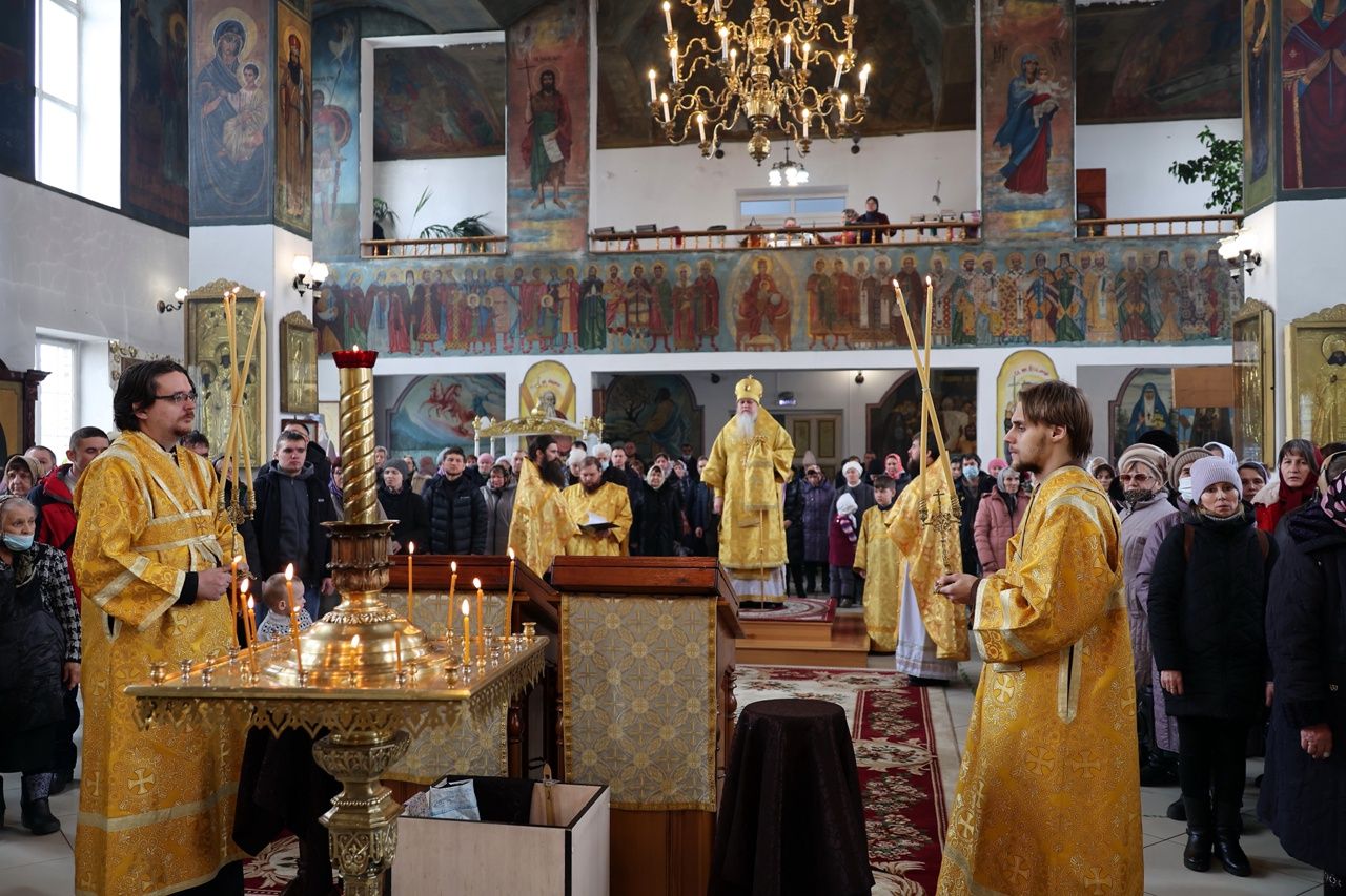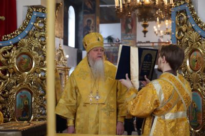 Его Преосвященству сослужили клирики собора. Песнопения исполнял архиерейский хор.