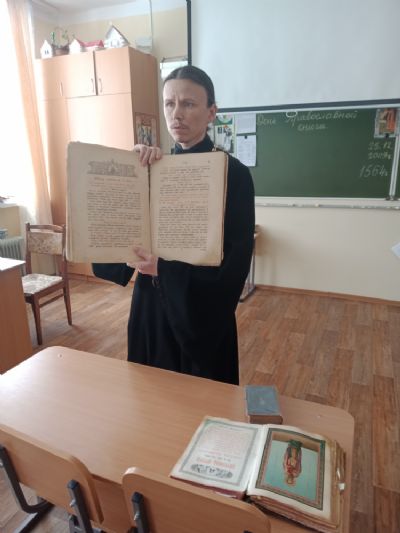 Ученики с большим вниманием слушали беседу батюшки о пользе чтения духовной литературы, узнали, что все добрые дела и помыслы необходимы нам для врачевания души и тела, а помогают этому установленные Православной Церковью посты. Ребята впервые увидели старинные издания церковных книг. Так, служебная книга Минеи была выпущена в 1895 году, а в настоящее время бережно хранится в храме села Кузнецово.