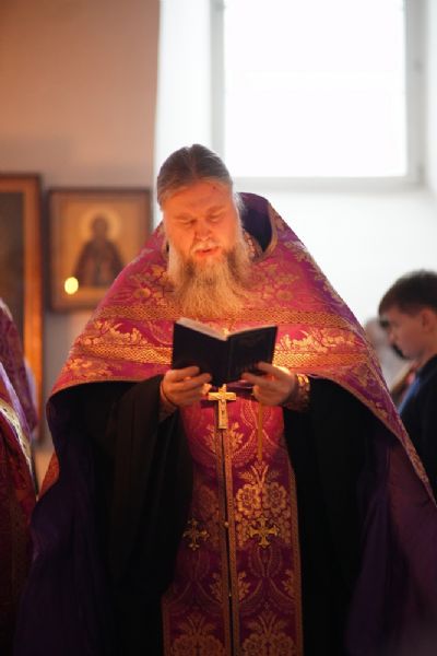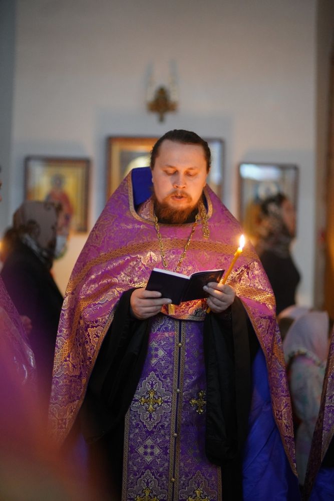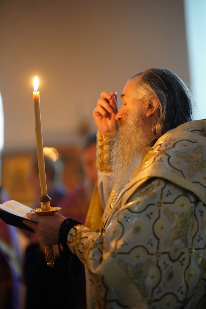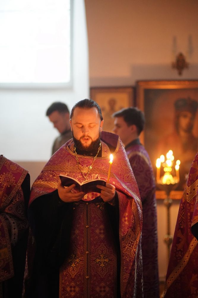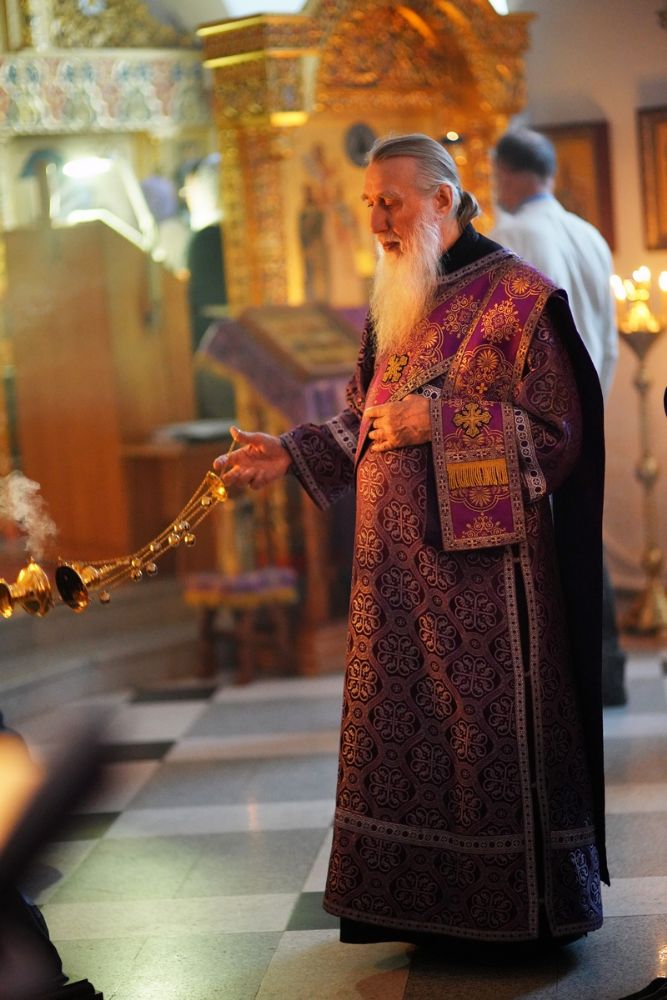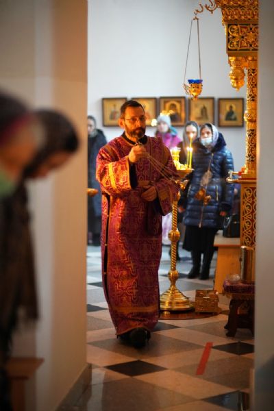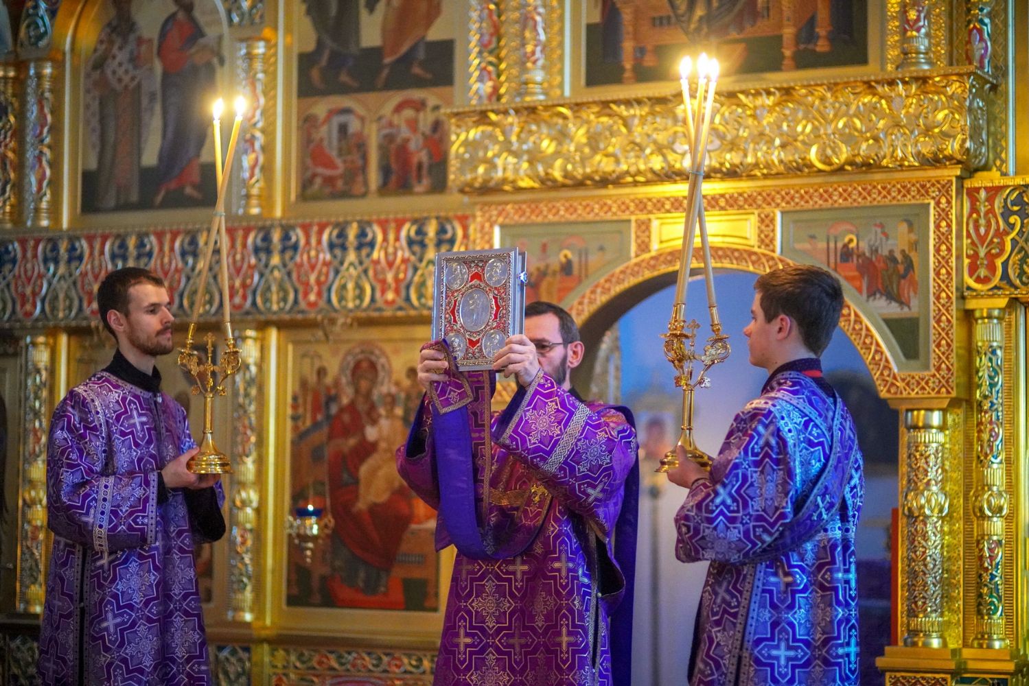 Владыке сослужили настоятель храма протоиерей Александр Бачурин, полковой священник иерей Георгий Колотов, клирики Серафимовского храма и протодиакон Михаил Козловский. Песнопения исполнял хор храма под руководством регента Елены Умрихиной.