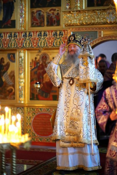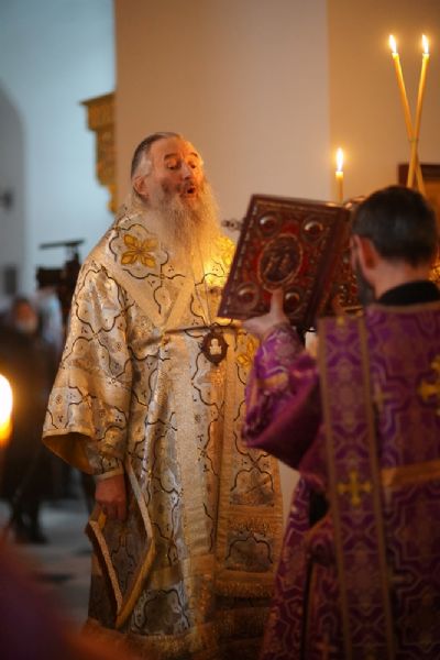 После чтения Евангельского зачала, читаемого в дни, посвященные Кресту Господню, митрополит Иоанн обратился с проповедью к собравшимся: