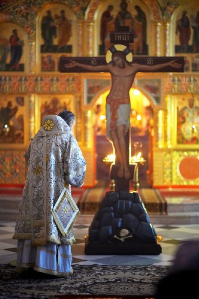 «Вот, возлюбленные братия и сестры, милостью Божией Господь сподобил нас в этот воскресный день Великого поста еще и еще раз внимательно всмотреться вглубь своего сердца и, воззрев на страдающего на Кресте Господа, испытать свою совесть – с Богом ли мы живем в этой жизни.