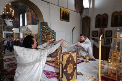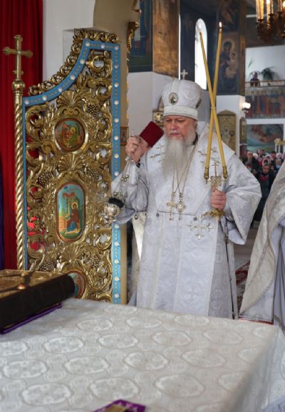 По окончании богослужения епископ Феофан обратился к собравшимся с проповедью, отметив, что в этот день Святая Церковь воспоминает событие, когда святая равноапостольная царица Елена в 326 году в Иерусалиме обрела Честный Крест Господень и гвозди, которыми Господь наш Иисус Христос был пригвожден ко Кресту.