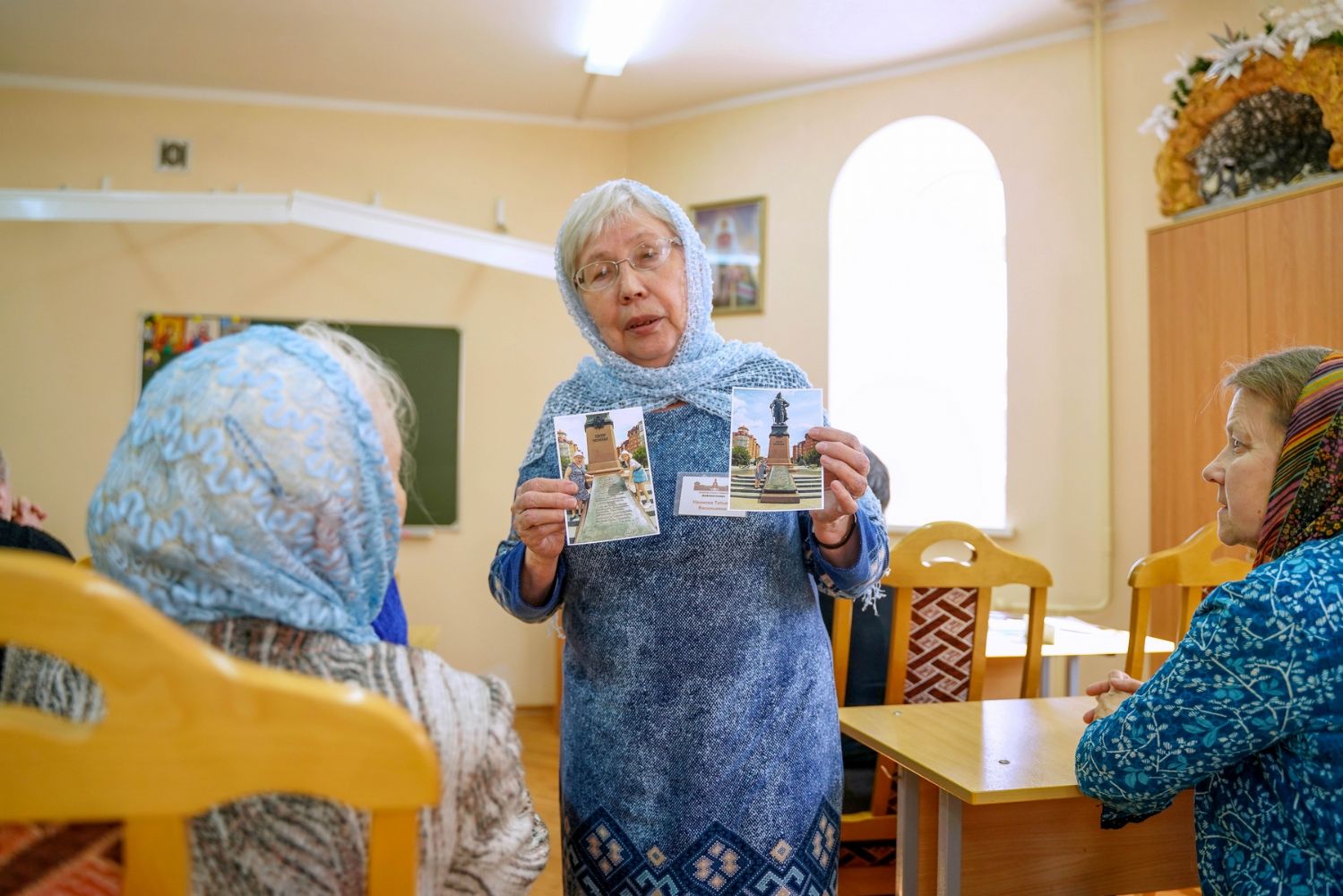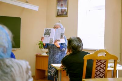 Свой рассказ Татьяна Васильевна проиллюстрировала фотографиями самого корабля и каюты Петра I, а также ознакомила библиотекарей с книгами «Дедушка русского флота» Л. Рубинштейна, «Рассказы о Петре Великом», «Битва у Лесной» А. Велько. Завершился мастер-класс чтением отрывков из сборника «Юности честной зерцало». Такой урок истории был ранее проведен для воспитанников воскресных школ имени священномученика Леонида и Троицкого храма.