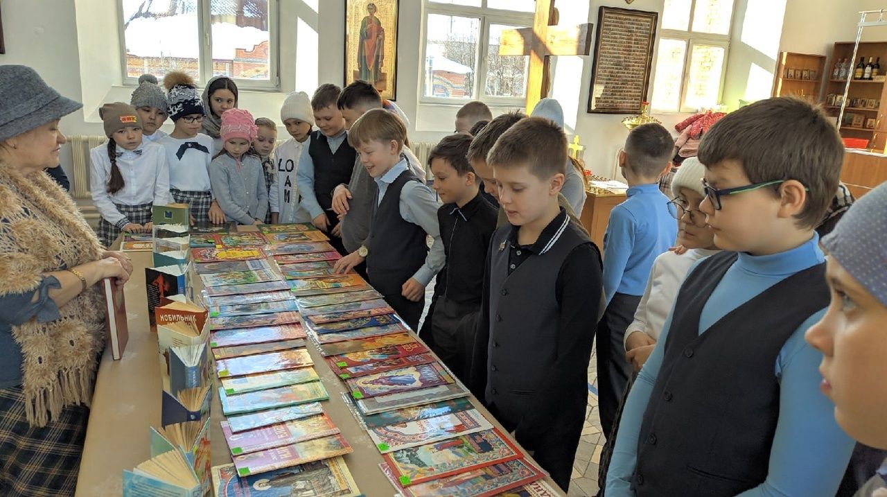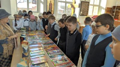 В храме Державной иконы Божией Матери на основе фондов храмовой библиотеки библиотекари Ираида Рыжова и Елена Алексеева организовали еще одну книжную выставку – здесь для школьников проводятся полезные и интересные ознакомительные экскурсии. Тем более, что кроме разнообразной современной литературы, храм располагает и фондом старопечатных книг.