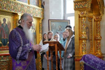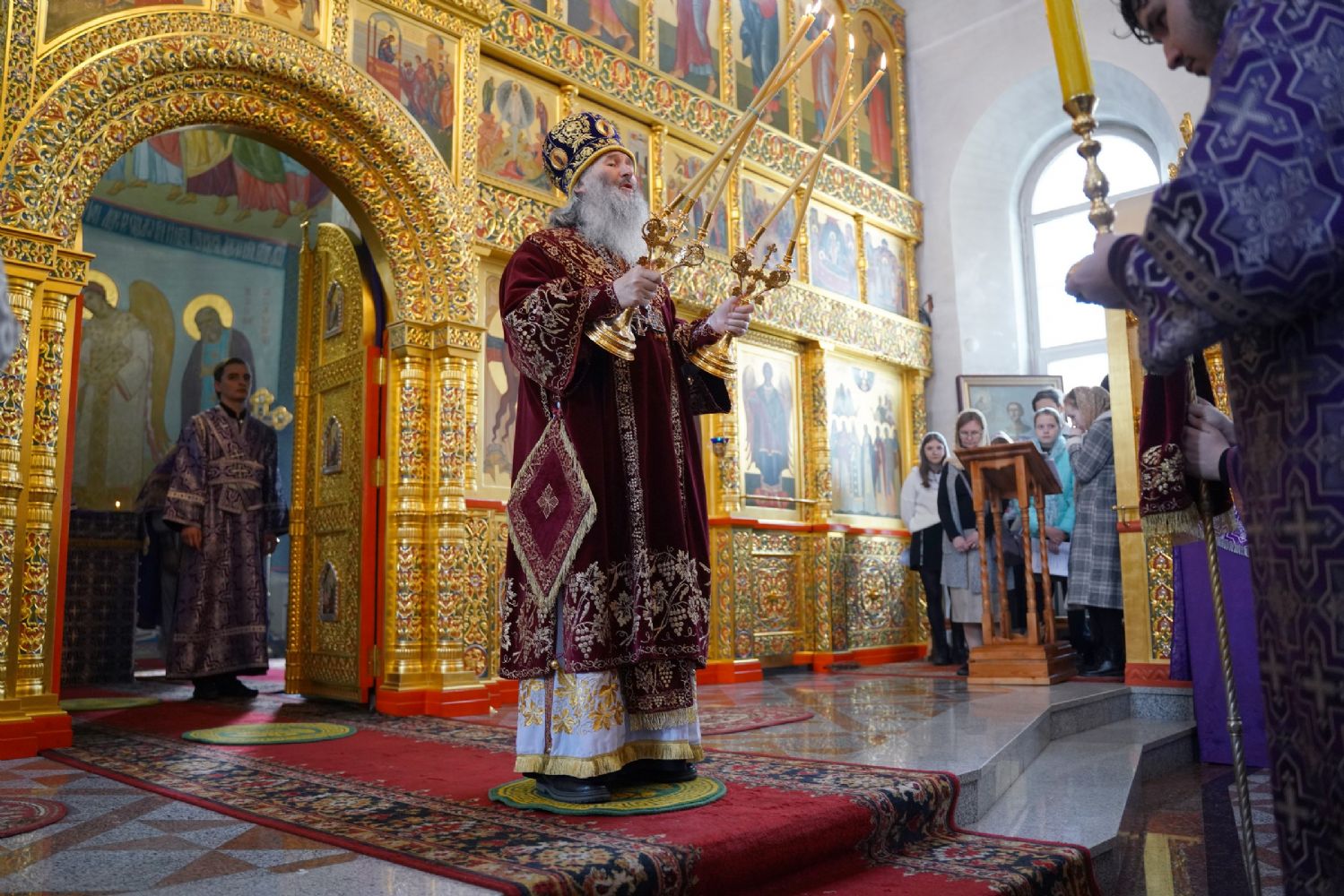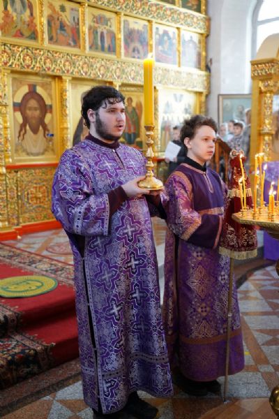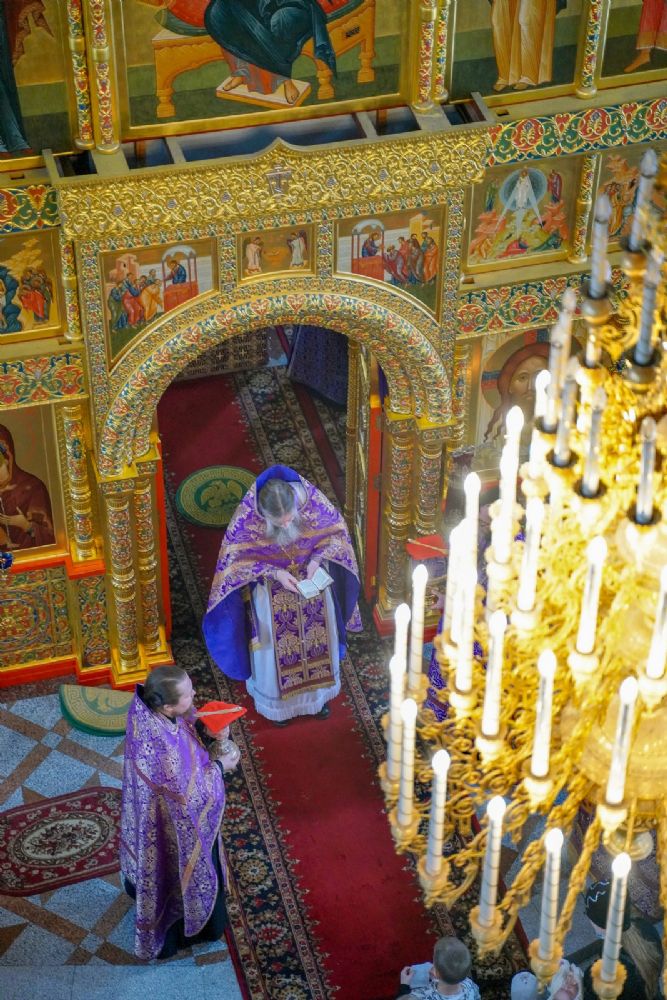 Его Высокопреосвященству сослужили сослужили настоятель храма протоиерей Александр Бачурин, клирики храма и протодиакон Михаил Козловский. Песнопения исполняли хор храма под управлением Елены Умрихиной и детский хор воскресной школы под руководством регента Надежды Шушаковой.