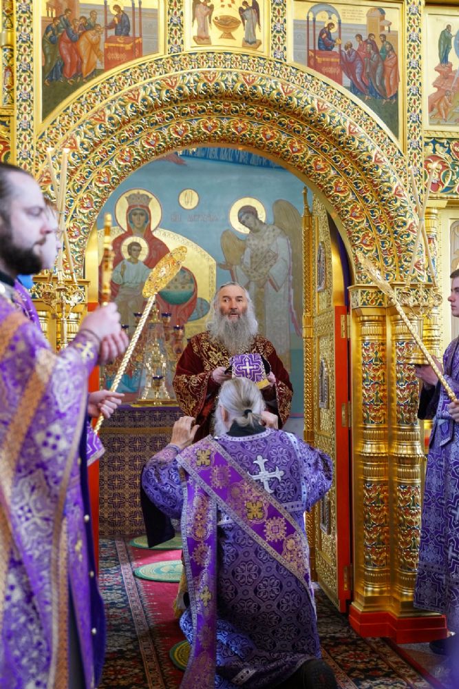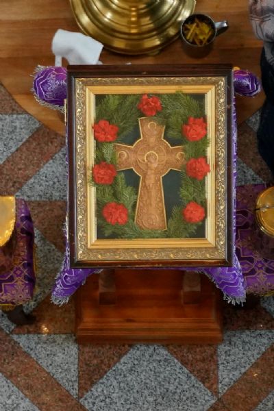 «В середине Великого поста, когда многие из нас уже изнемогли, Святая Церковь как чадолюбивая мать укрепляет наши духовные и физические силы, износя Древо животворящее – Честной Крест – на середину храма. Чтобы каждый из нас, взирая на Господа, Который нашего ради спасения восшел на Крест, укрепил свои физические и духовные силы. Крест – это орудие непобедимое против диавола, воюющего против нас.