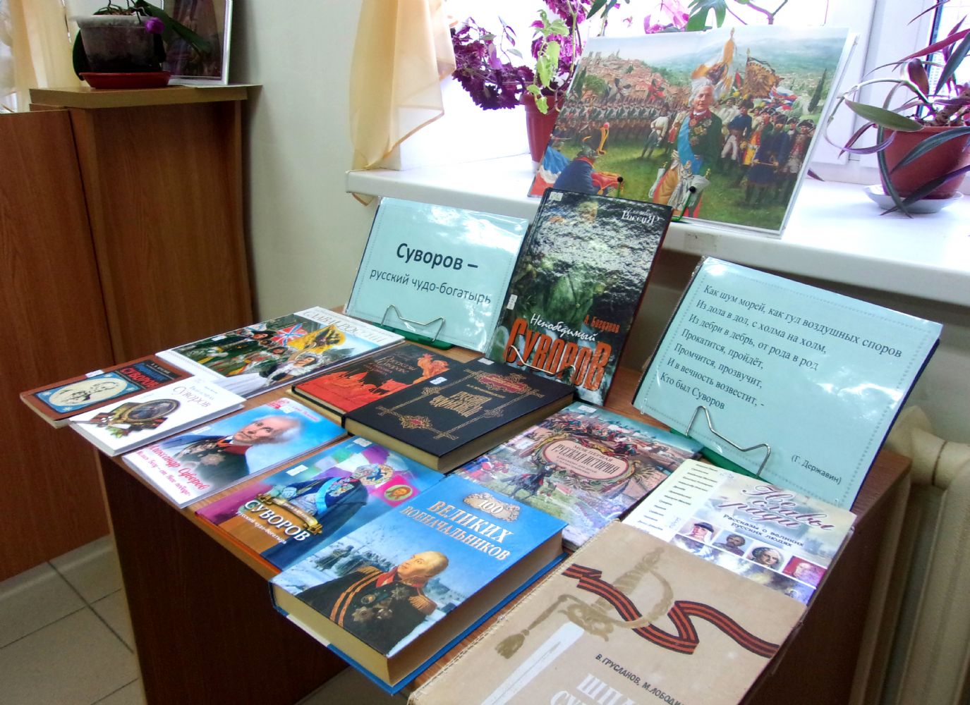 Татьяна Васильевна порекомендовала детям книги о Суворове, а их написано множество. Некоторые из них были представлены на выставке.
