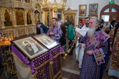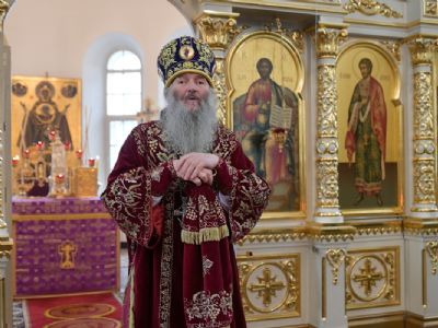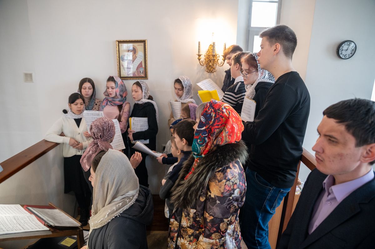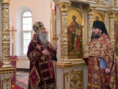 Владыке сослужили секретарь Йошкар-Олинского епархиального управления иеромонах Серафим (Пасанаев), настоятель храма иерей Александр Лоскутов, клирики храма и протодиакон Михаил Козловский. Песнопения исполнял хор храма под управлением регента Наталии Поповой.
