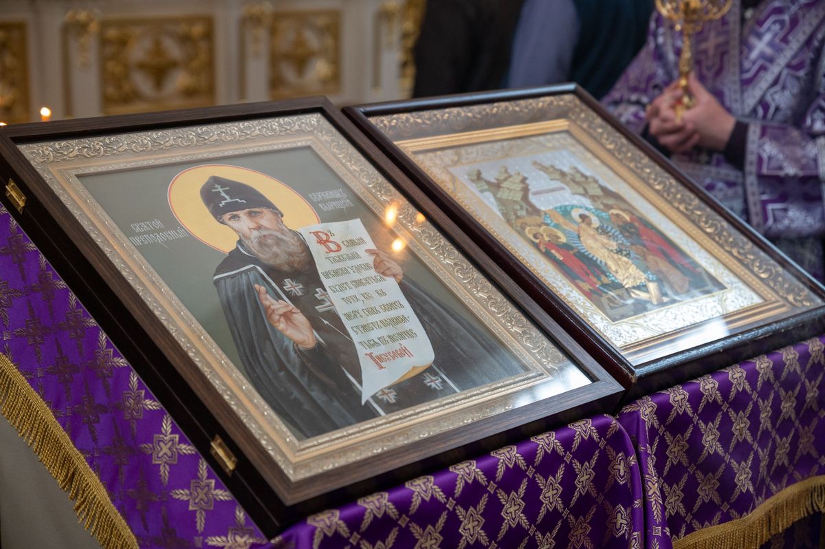 «Ваше высокопреподобие, дорогой отец Серафим, сегодня Русская Православная Церковь обращает молитвенные взоры к преподобному Серафиму Вырицкому. Ты имеешь столь дивного небесного покровителя, который жил в безбожном ХХ веке, но своей жизнью и любовью ко всем показал, что такое есть жизнь в Боге, что такое есть истинное монашеское делание, которое совершается по водительству Пречистой Богоматери. И в жизни преподобного сколько для тебя примеров – как относиться к внешнему миру, как любить паству свою, как любовью и молитвой растворять зло, обуявшее наш мир. А самое главное – это непрестанная молитва Иисусова, обращенная ко Господу, и прославление Пречистой Богородицы архангельским благовестием.
