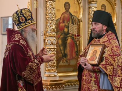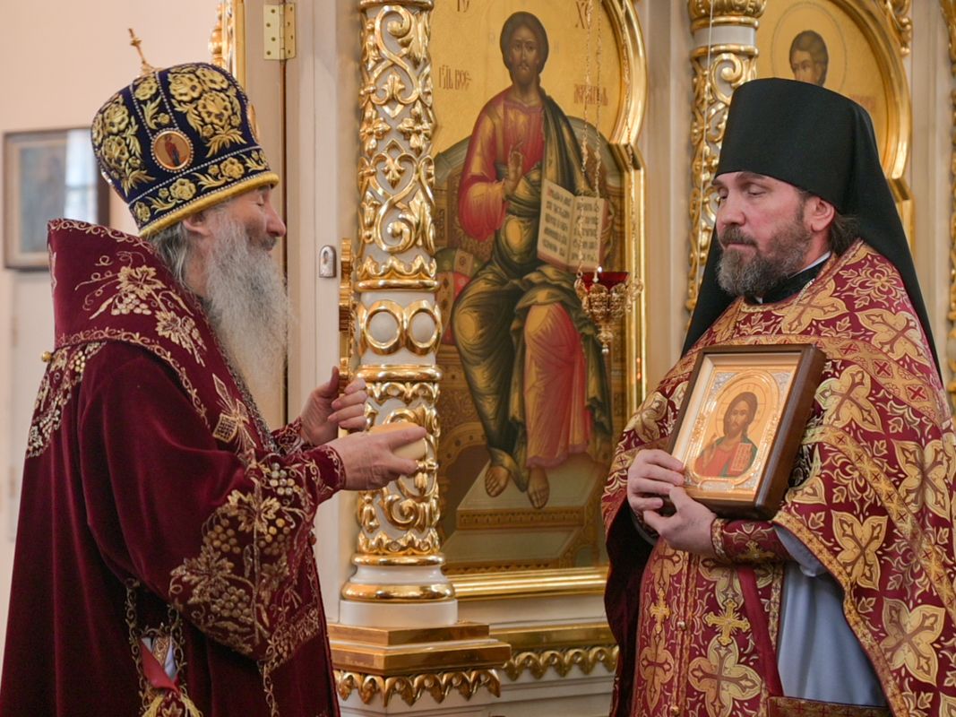 По окончании богослужения митрополит Иоанн поздравил секретаря Йошкар-Олинского епархиального управления иеромонаха Серафима (Пасанаева) с днем тезоименитства.