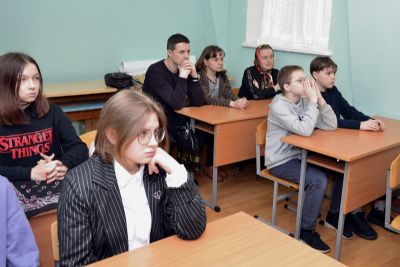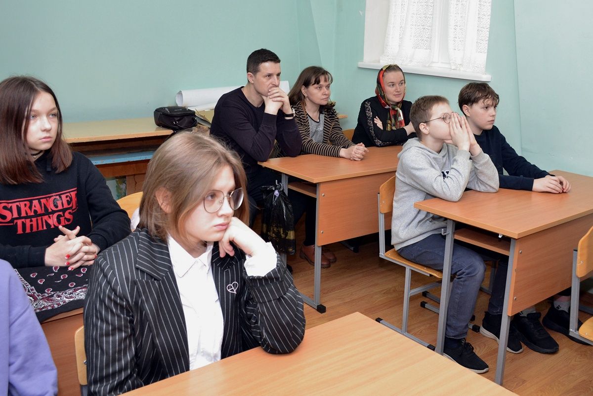 В рамках урока гость и преподаватели побеседовали с ребятами о таких понятиях, как мужество, героизм, подвиг, патриотизм. Поговорили о тех людях, кто является героем нашего времени сегодня, вместе с детьми вспомнили имена Героев России.